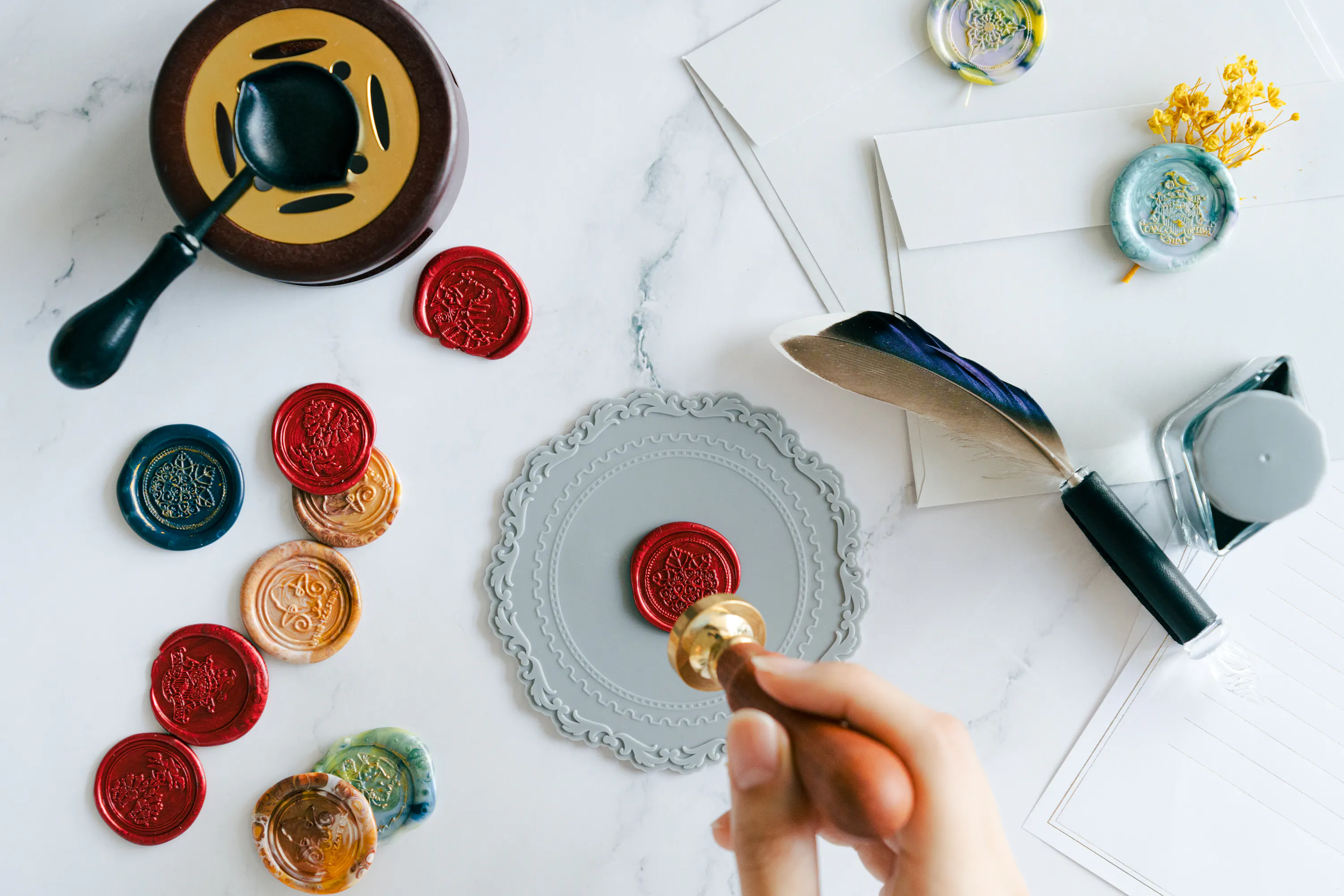 羽根ガラスペンとオリジナルインクを使って書き、オーダーメイドシーリングスタンプを使って封をした手紙...想像するだけで、めちゃめちゃワクワクしますよね!