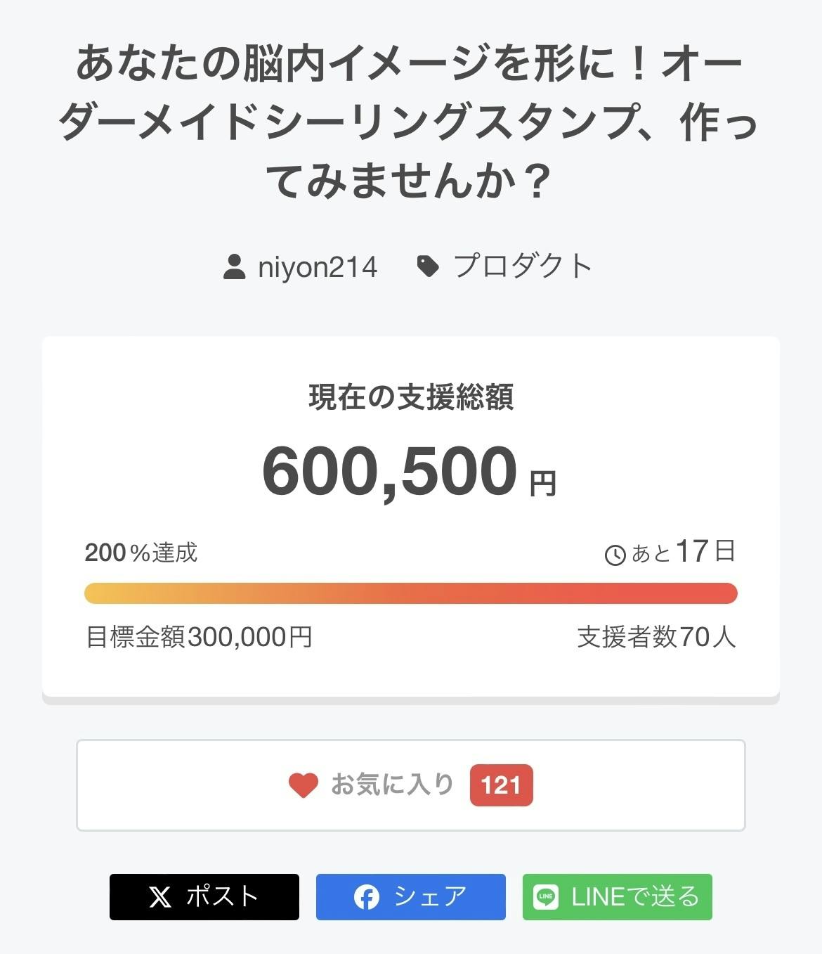 さて、これからの目標ですが,残り17日,そして121人のお気に入り登録者様,そしてたくさんの声援・応援をくださった皆様と共に、第3のゴールを目指して行きたいと思います。