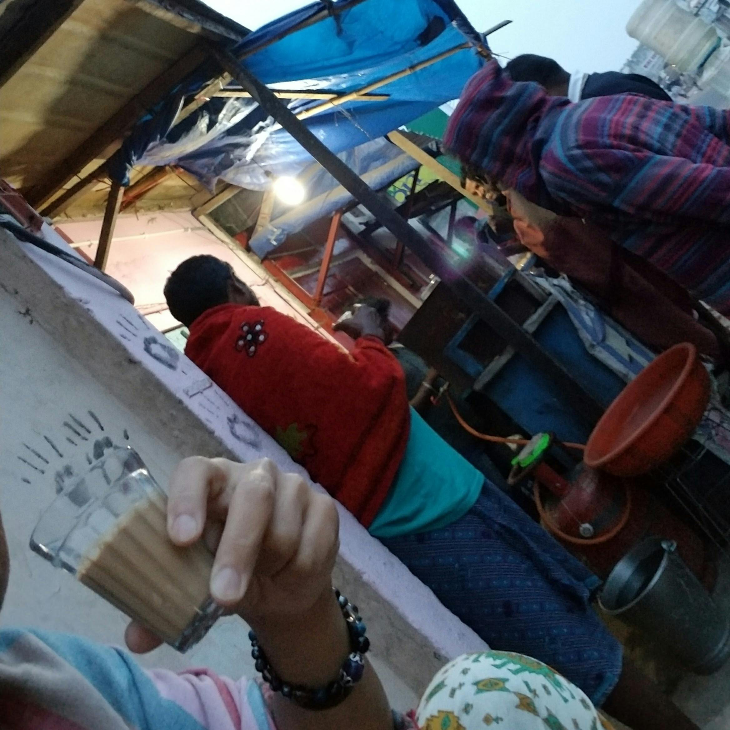 インドでの朝は、いつものチャイ屋さんで馴染みのインドの人達との一杯のチャイから始まりました。