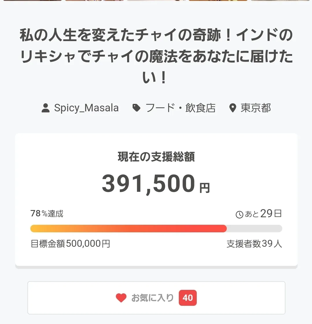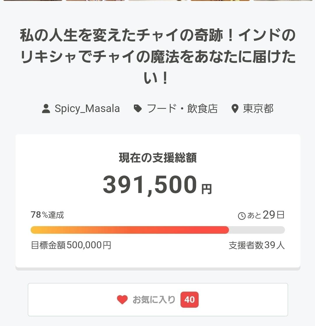 皆様のご協力のおかげで、第一目標の78%となりました。