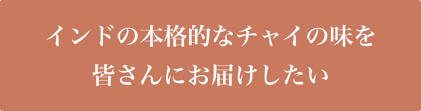 甘さを抑えながらも、スパイスの奥深いコクと香りが楽しめる、「インドで飲んでいたあの味」を再現しました。