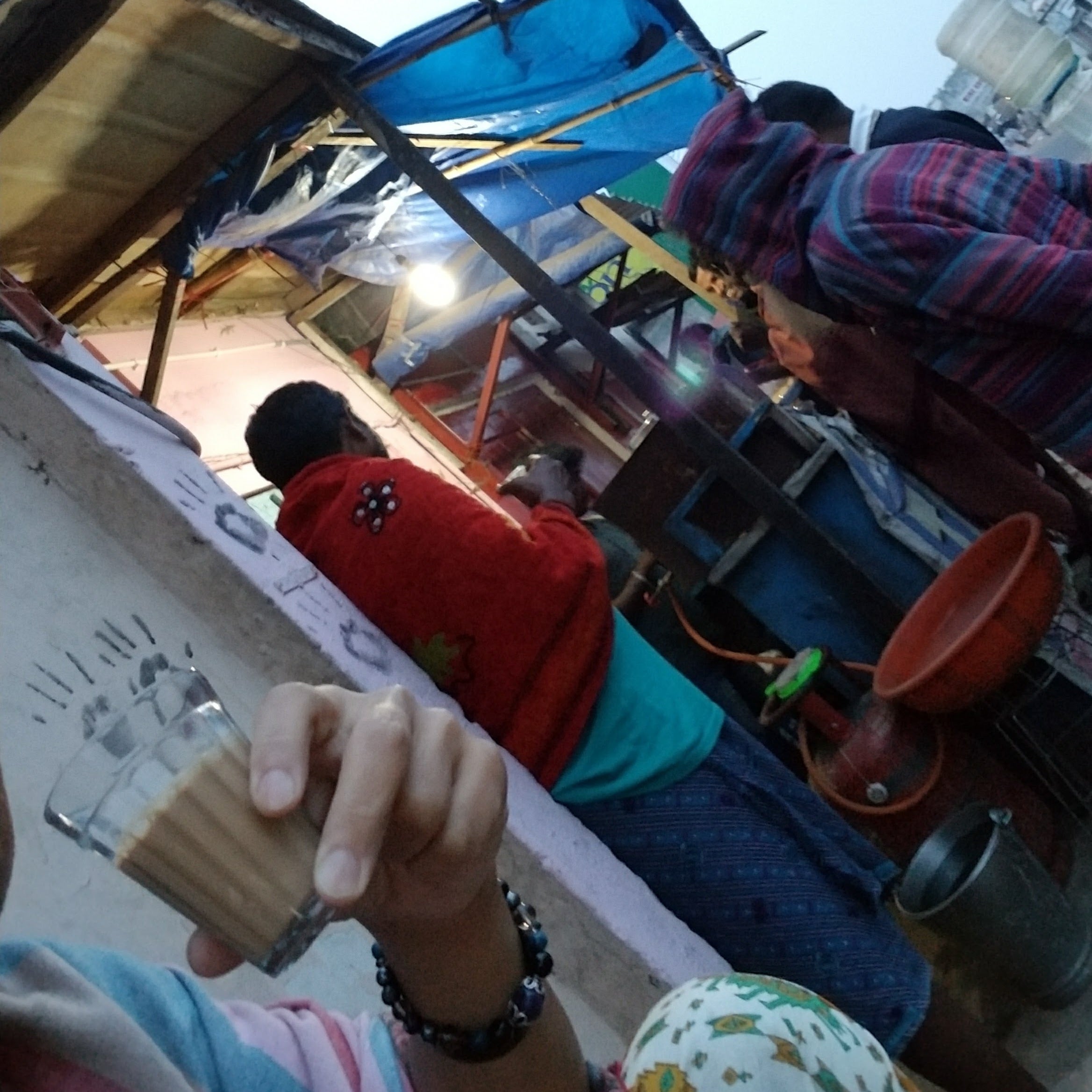 インドでの朝は、いつものチャイ屋さんで馴染みのインドの人達との一杯のチャイから始まりました。
