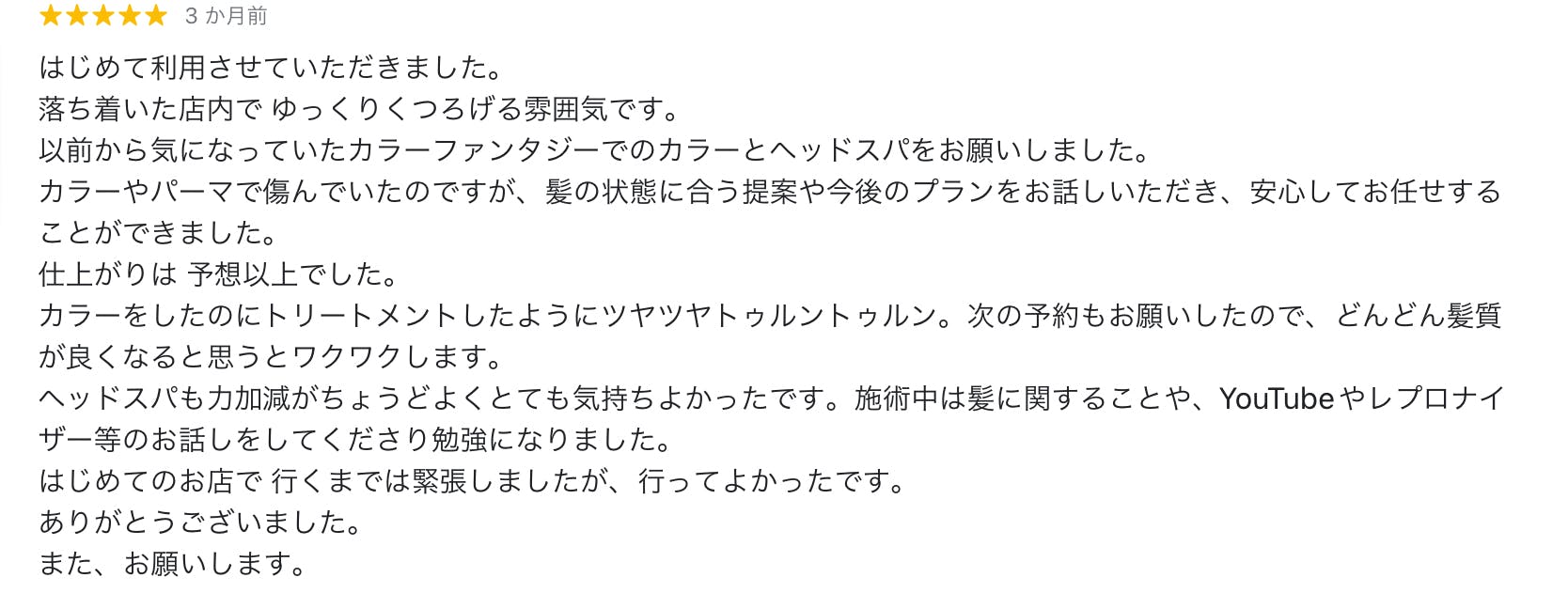 Google口コミ←クリックすると全口コミが見れます。※個人の感想です