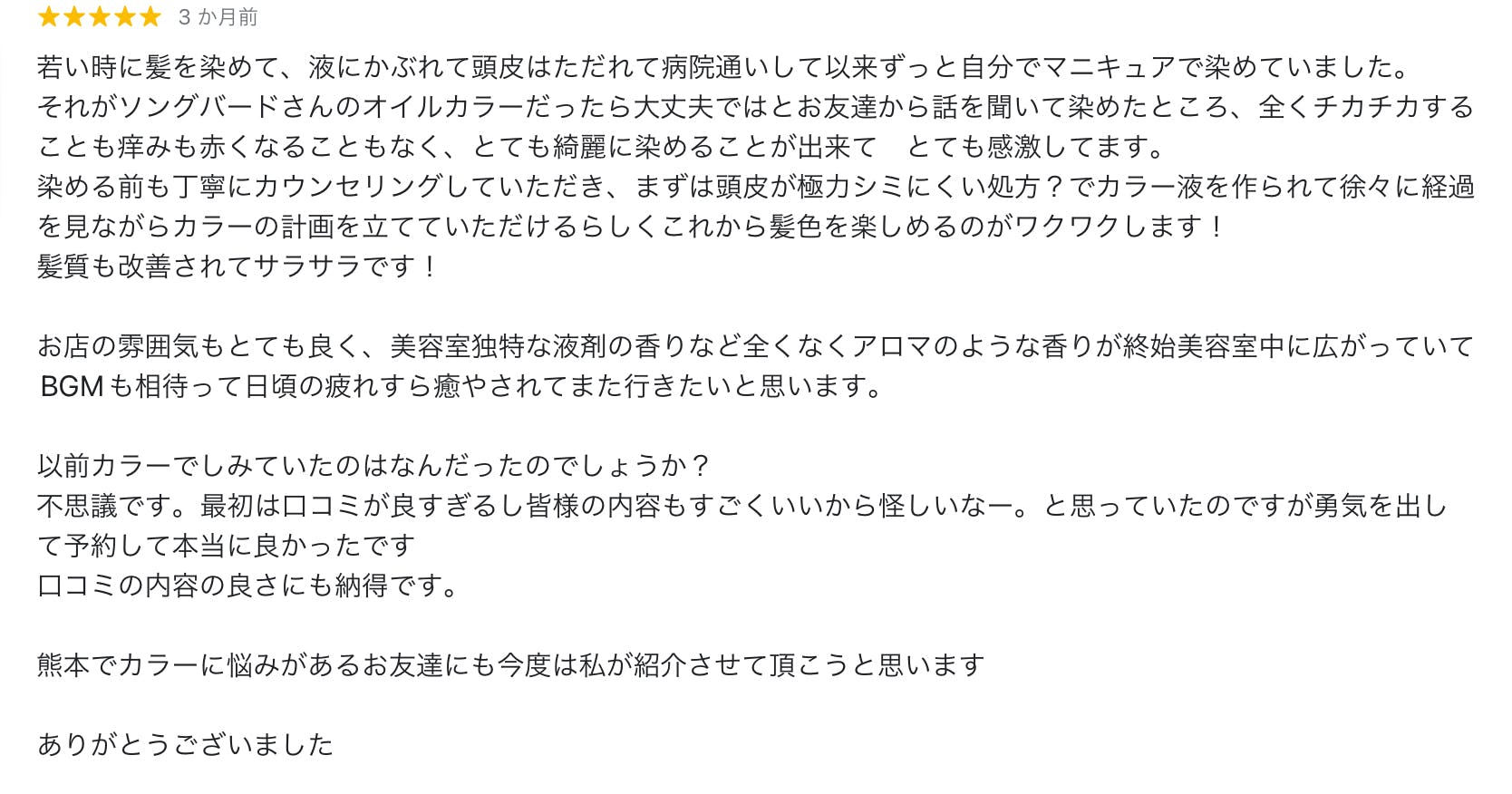 「ソングバード(熊本市南区の美容室)」スタイリストのエグチです