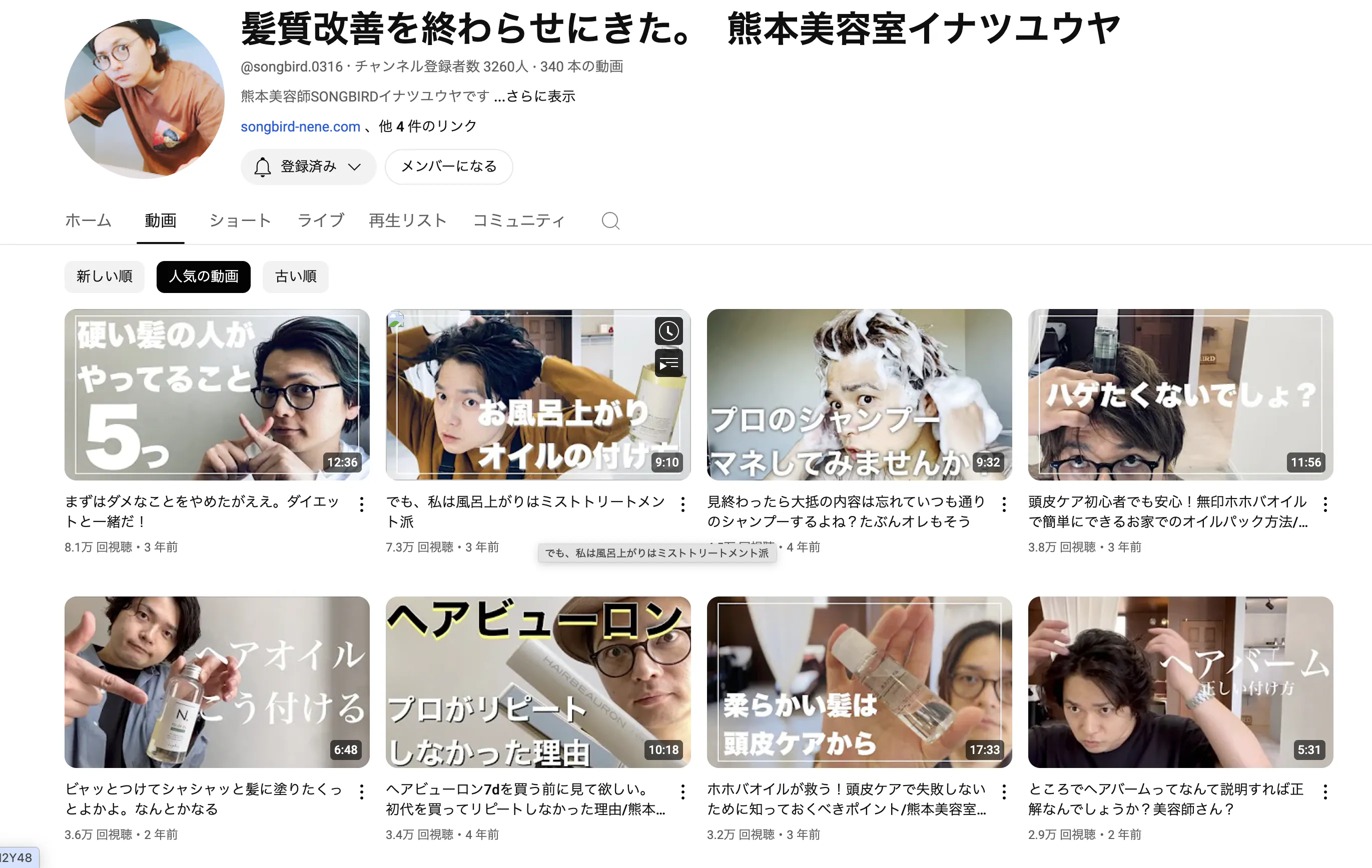 代表 稲津佑哉は美容業を主とし、普遍的で本来のご自身の髪を綺麗にするヘアケア方法をブログ発信・Youtube動画発信を継続して参りました