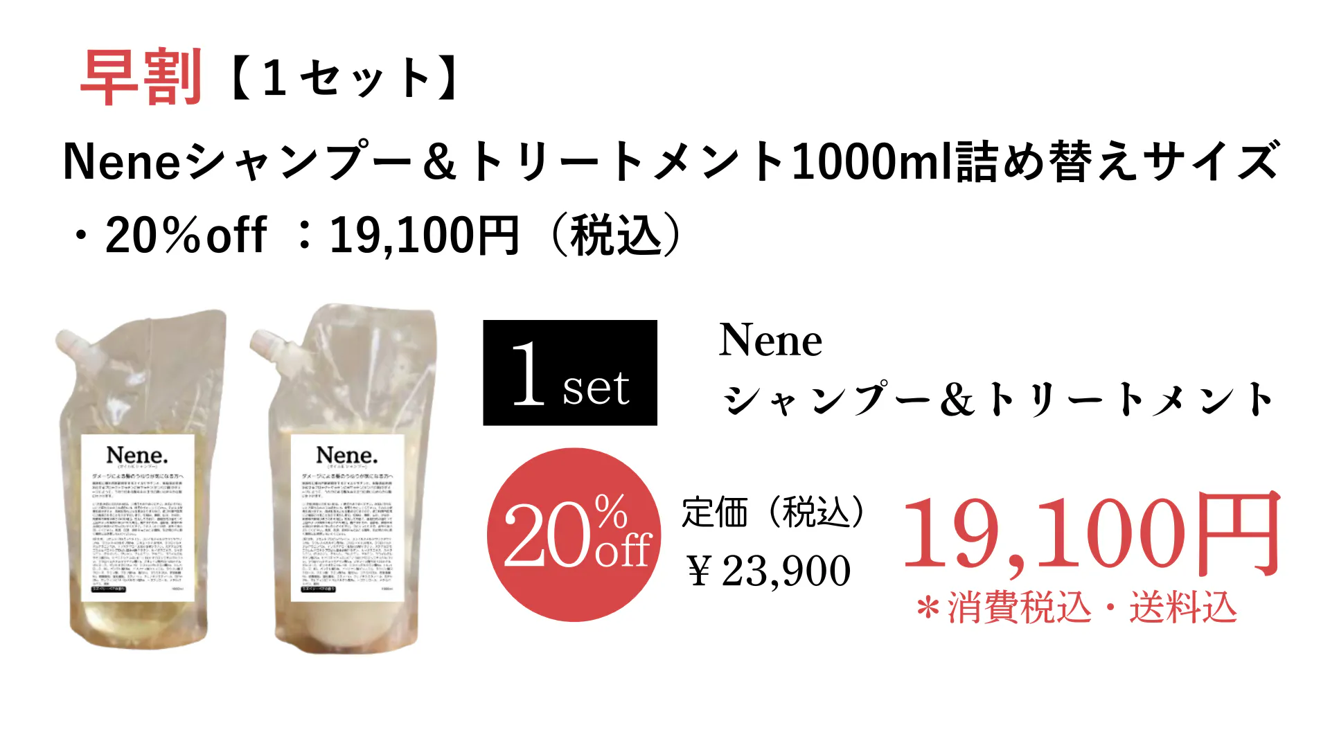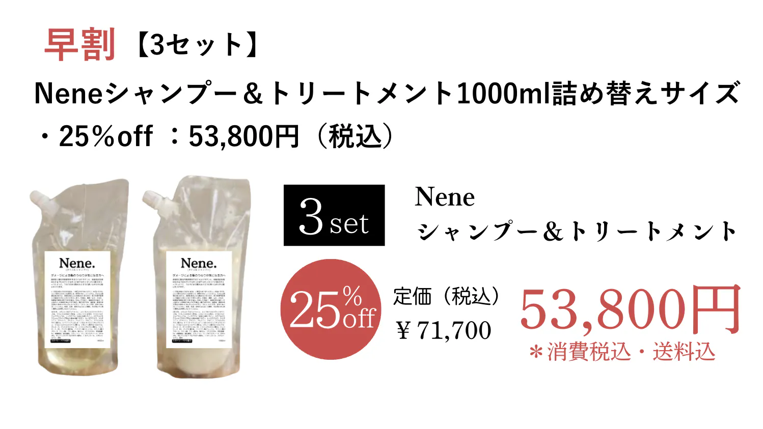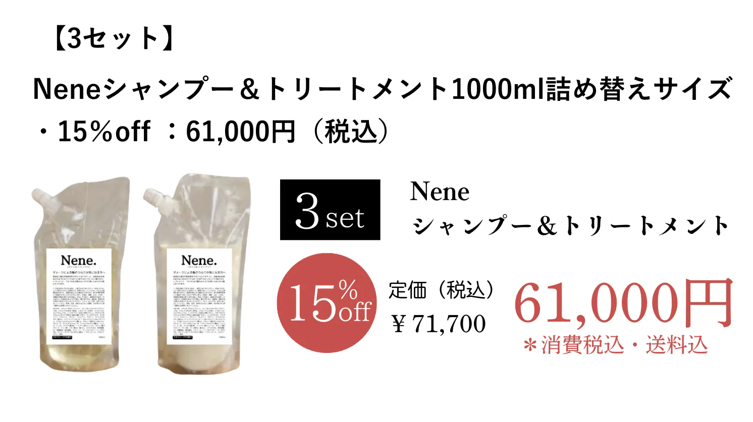 ▼『肌を想い、髪を育み、信頼を纏う』Neneシャンプー・トリートメント詰め替え1Lサイズの制作&販売を行います!