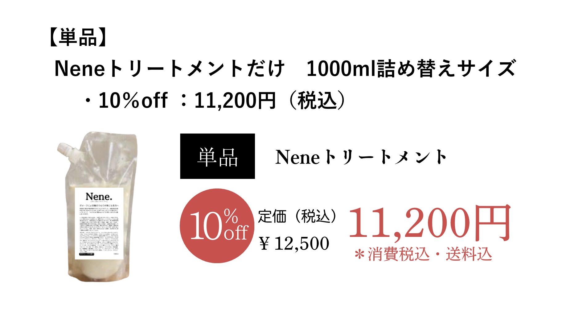 ・Neneシャンプー・トリートメント1リットル詰め替えサイズの作成、発注