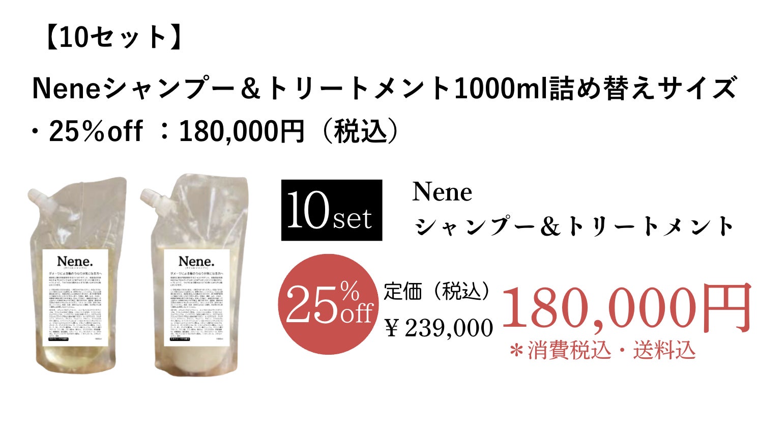 ▼『肌を想い、髪を育み、信頼を纏う』Neneシャンプー・トリートメント詰め替え1Lサイズの制作&販売を行います!