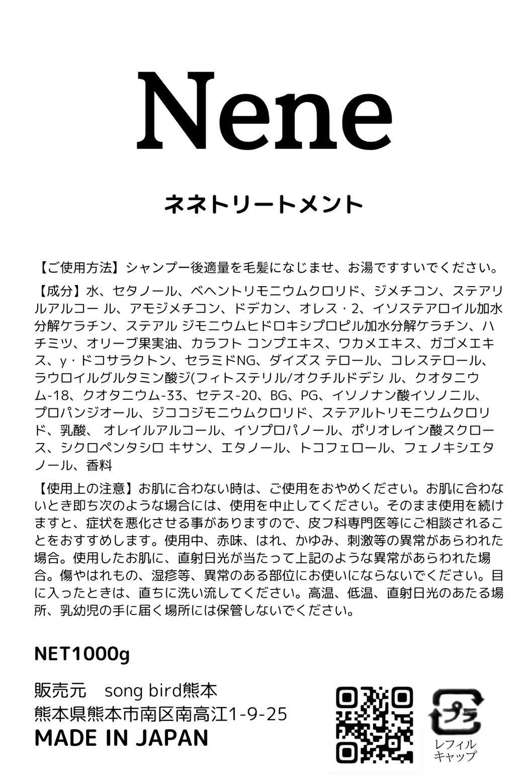 Neneは熊本の美容室SONGBIRDが製作したシャンプートリートメントです