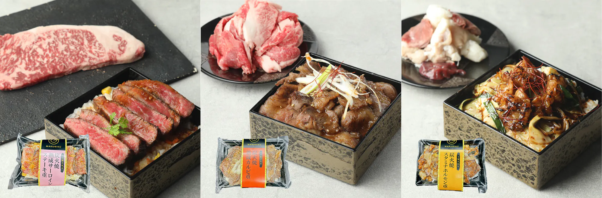 炭火焼肉・タレ・ご飯のベストな一体化のために試行錯誤を重ね、ようやく完成したのがマルニクの炭火焼重シリーズです。
