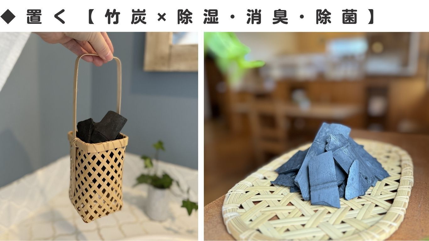 玄関や部屋、冷蔵庫内、トイレ、靴箱、ゴミ箱内などに置くことで、調湿・消臭・除菌などに活用できます。これは古くから活用していた日本人の知恵です。定期的に天日干しをすると半永久的に使用できる優れものと言われています。