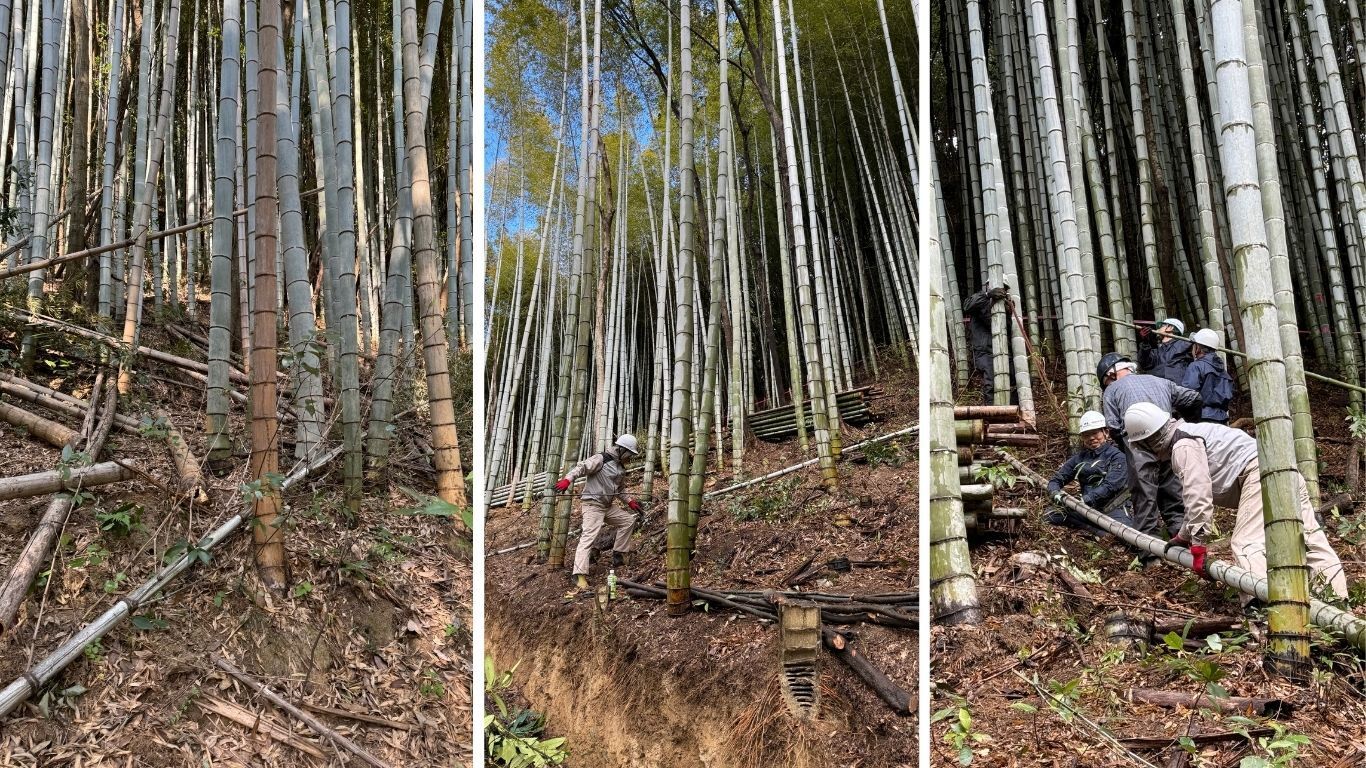 2023年の秋、里山の竹林整備に取り組む師匠から大分県が直面している放置竹林問題のことを聞き、調べるほどに日本全国が深刻な環境課題として竹林整備が急務である実情を知りました。また師匠たちは、昔ながらの土窯製法で竹炭を手作りする技術を持ち合わせていますが、活動人数が年々減少し将来的な継続が懸念されています。
