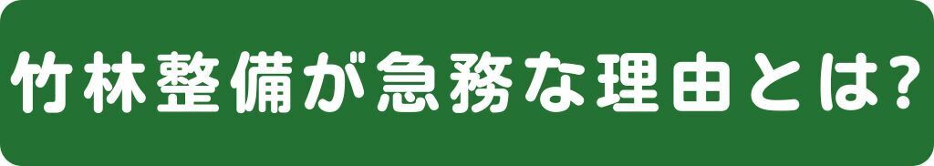 ①竹は根が浅く30センチメートル程のため、竹林ごと斜面を滑り落ち、広い範囲で土砂災害を引き起こしやすいのです。②繁殖力が強いため、周囲の公道・森林・家屋へ侵入し、破壊してしまいます。③竹は非常に成長がはやく、周囲の植物の成長を妨げ、枯らしてしまうなどの可能性が高いと懸念されており、他にも多くの理由が言われています。