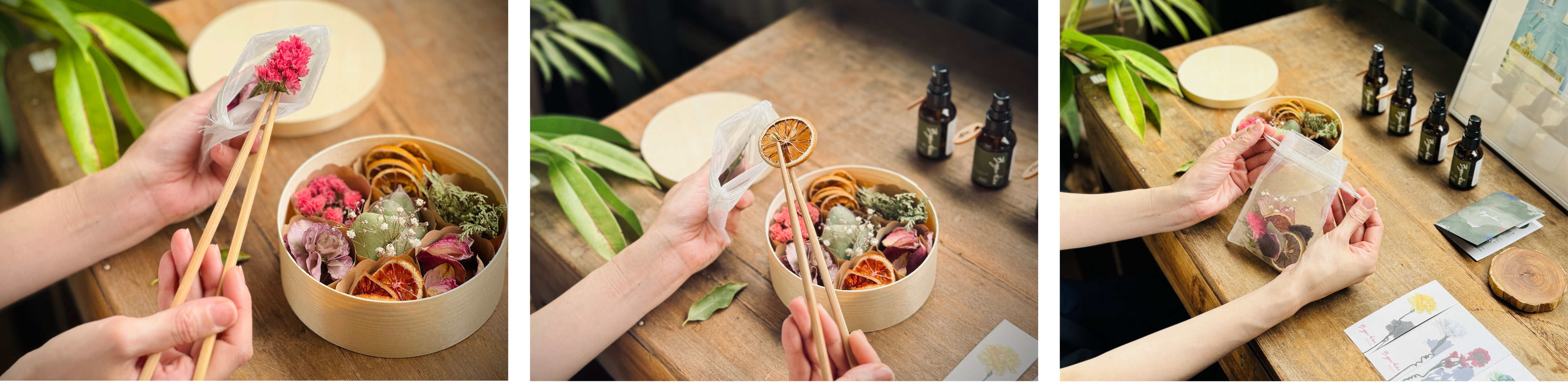 ③既存のByakuルームフレグランスとドライボタニカルとの融合 - 自分だけの香りを、素材の「取り合わせの妙」で作れる楽しみを知っていただきたい。