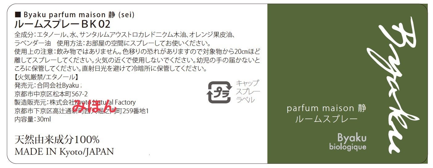 - ルームフレグランスは法律上”雑貨類”に分類されるため、化粧品類のように、詳細な成分表記は本来必要ではありません。