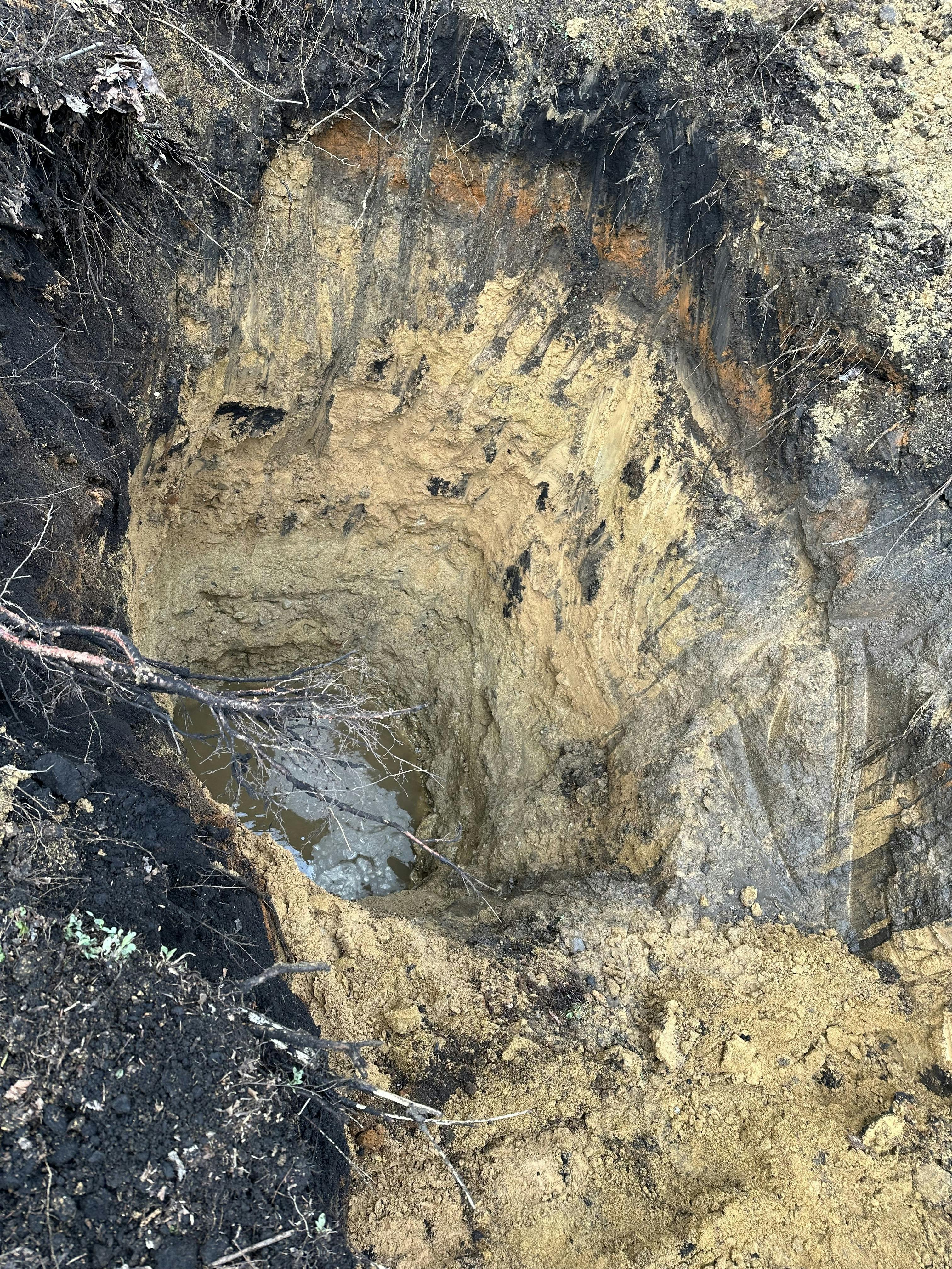 ただ、土が柔らかく、これが、地面が雨水を吸っているものか、湧いてきて染み出してるのか、確認するのに、水を出さないとわからないとのこと。
