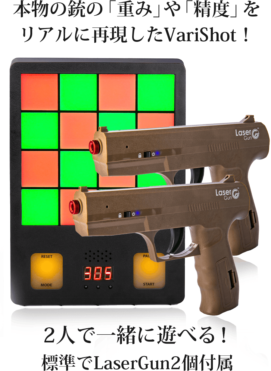 本物の銃に近づけることにこだわったVariShotで、臨場感溢れるレーザーシューティングを楽しめます。