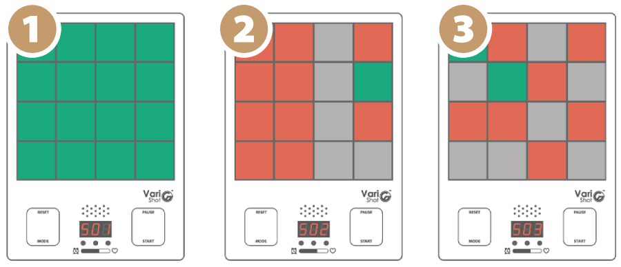 A. LED照明などが直接VariShotの盤面に当たると誤作動する場合があります。その場合は盤面に直接LED照明などが当たらないように、置き場所を調整してみてください。なるべく暗い環境の方がイルミネーションをよりはっきりと視認できますので、暗い環境でのご使用をお勧めします。