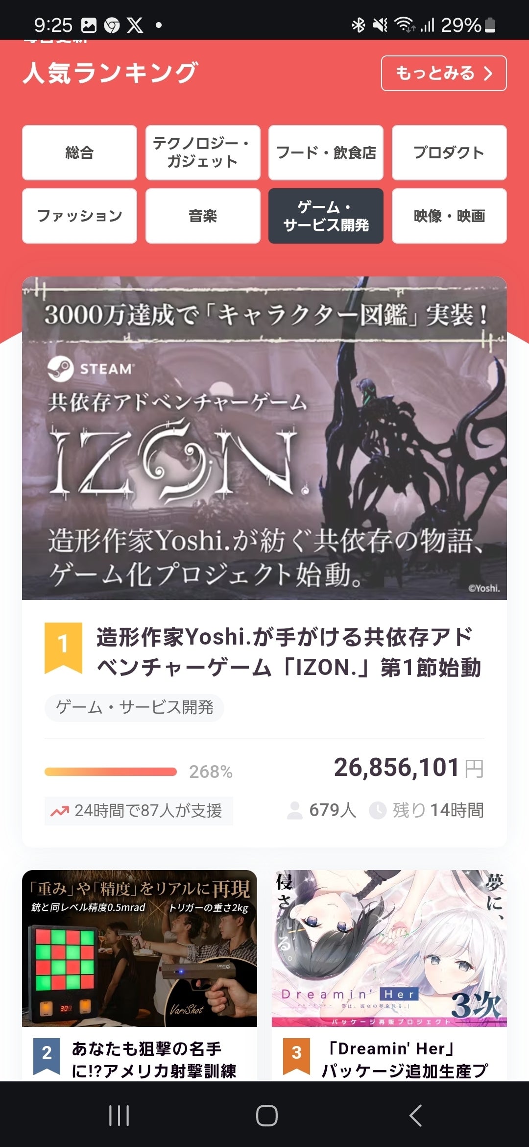 キャンプファイヤーのゲーム・サービス開発での人気ランキング2位を頂きました。