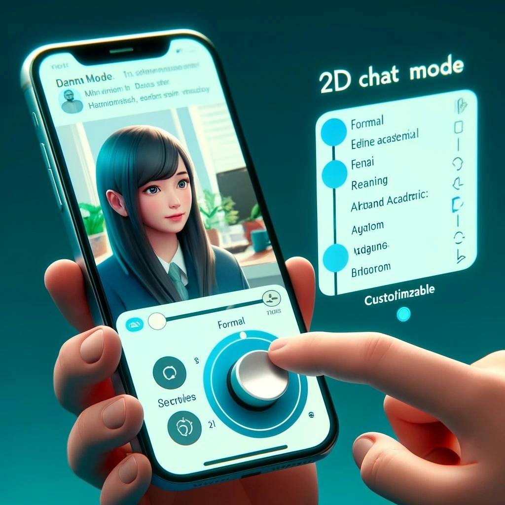 2Dチャットモードでは、ユーザーがスライダーを使ってAIとのインタラクションのスタイルをカスタマイズできます。この機能により、ユーザーはフォーマルからカジュアル、または教育的からエンターテイメント向けまで、対話のトーンを自由に調整できます。たとえば、もっと詳細な学術的情報を求める場合はスライダーをフォーマルな方向に移動させることで、AIが提供する情報の深さや専門性を増すことが可能です。逆に、もっとリラックスしたやり取りを望む時はカジュアルに設定することで、より親しみやすい会話が楽しめます。この柔軟性がユーザーにとって親しみやすい体験を提供し、日常の様々な状況やニーズに応じた使い方が可能になります。