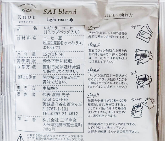 浅煎りのフルーティなブレンド(SAI)と中深煎りのコクと苦みのブレンド(YUI)のレギュラーコーヒー(ドリップバッグ入り)セットです。