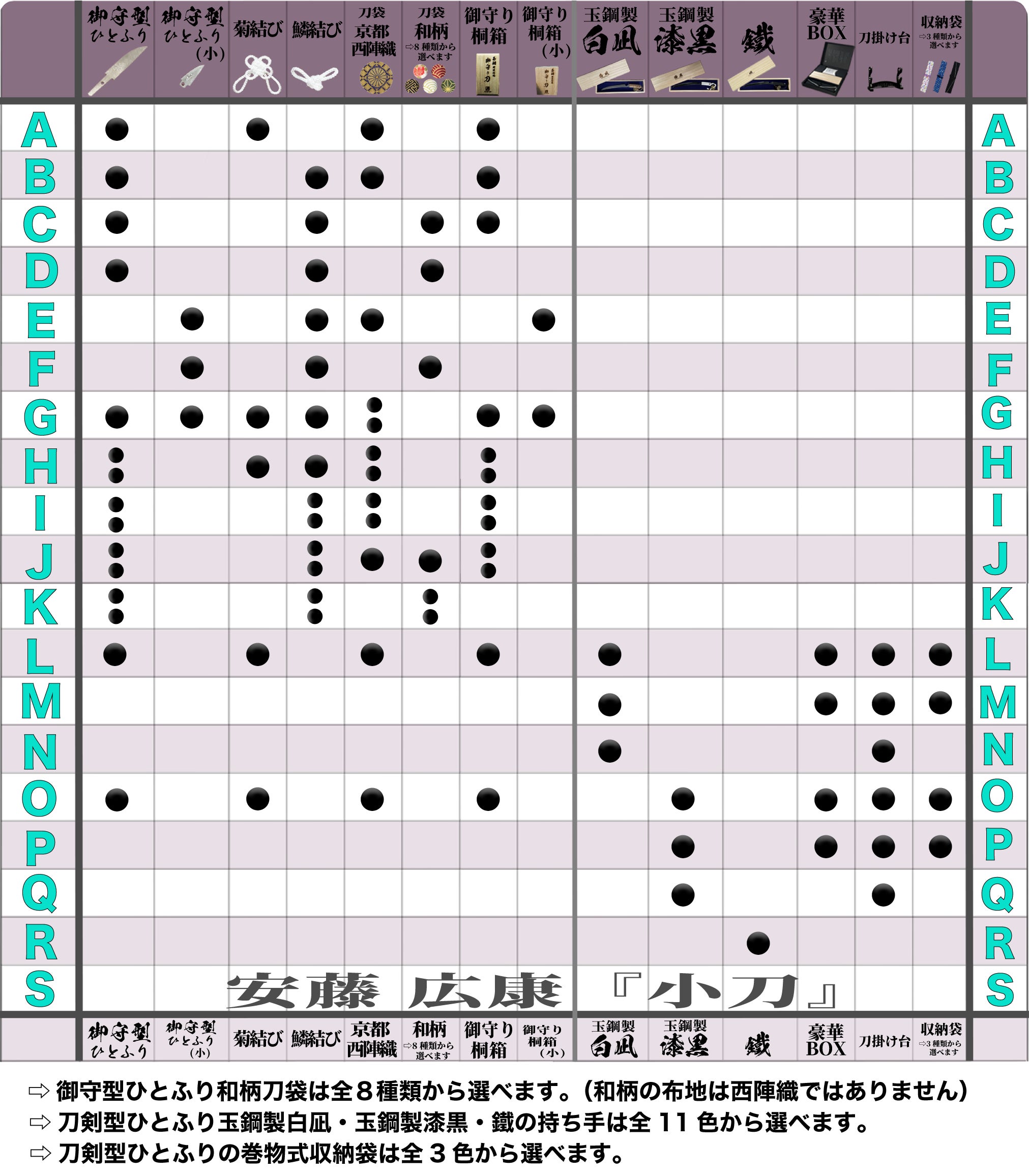 ・その他、選べる8種類の伝統的な和柄刀袋(こちらは西陣織ではありません)から、