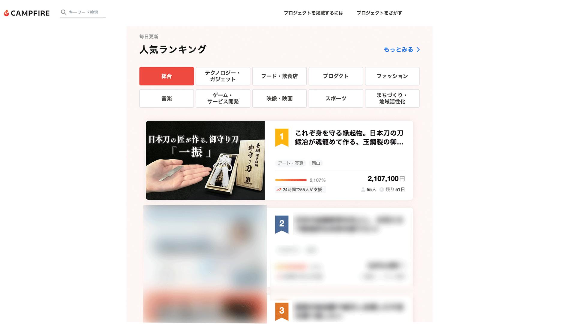 CAMPFIREのトップページで総合1位に輝きました!