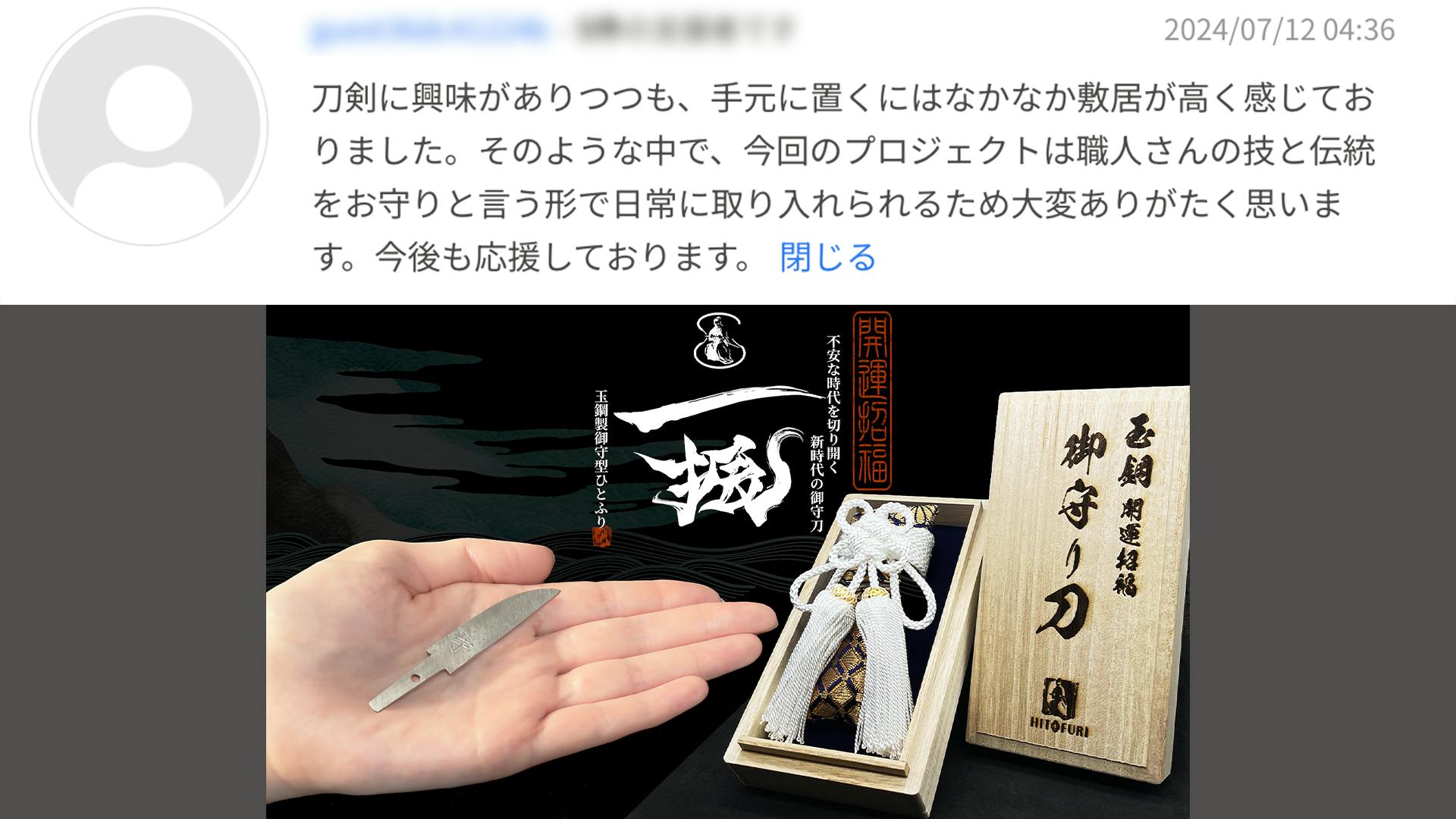 HITOFURIプロジェクトがお届けする「御守型ひとふり」は、