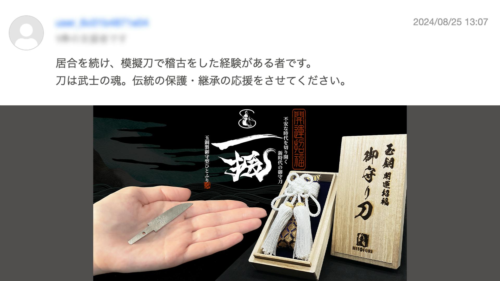 お手元に「御守型ひとふり」が届くことで、その精神を日常的な小さなお守りとして、
