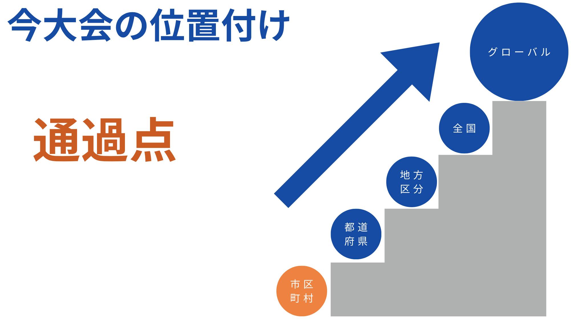 前回大会は、将来的にはグローバルでの大会開催を見据えた通過点として捉えており、市区町村エリアの大会に位置付け。