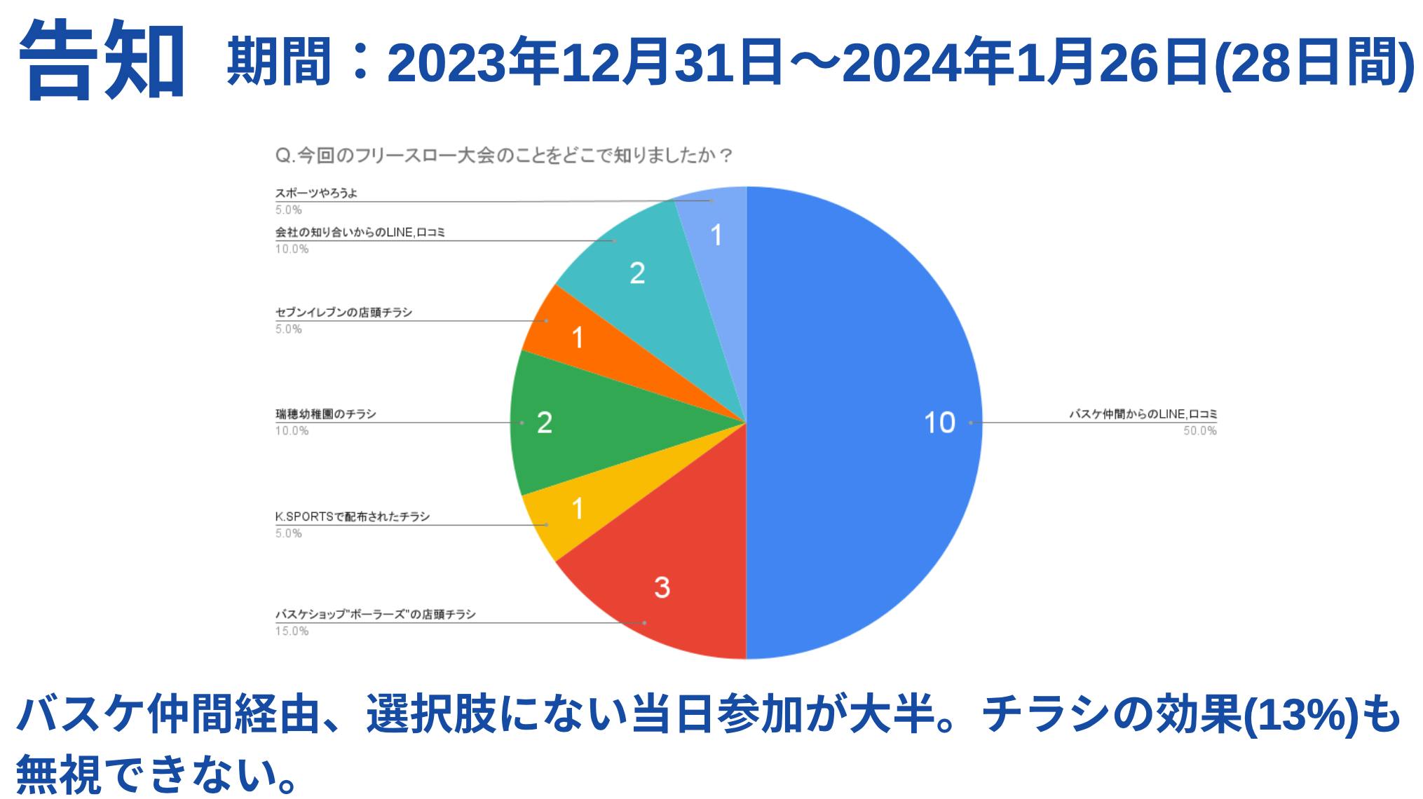 初めての開催であったため、全てが手探り状態ではありましたが、大会の告知はできる限りの方法で実施し、チラシの効果も確認できました。