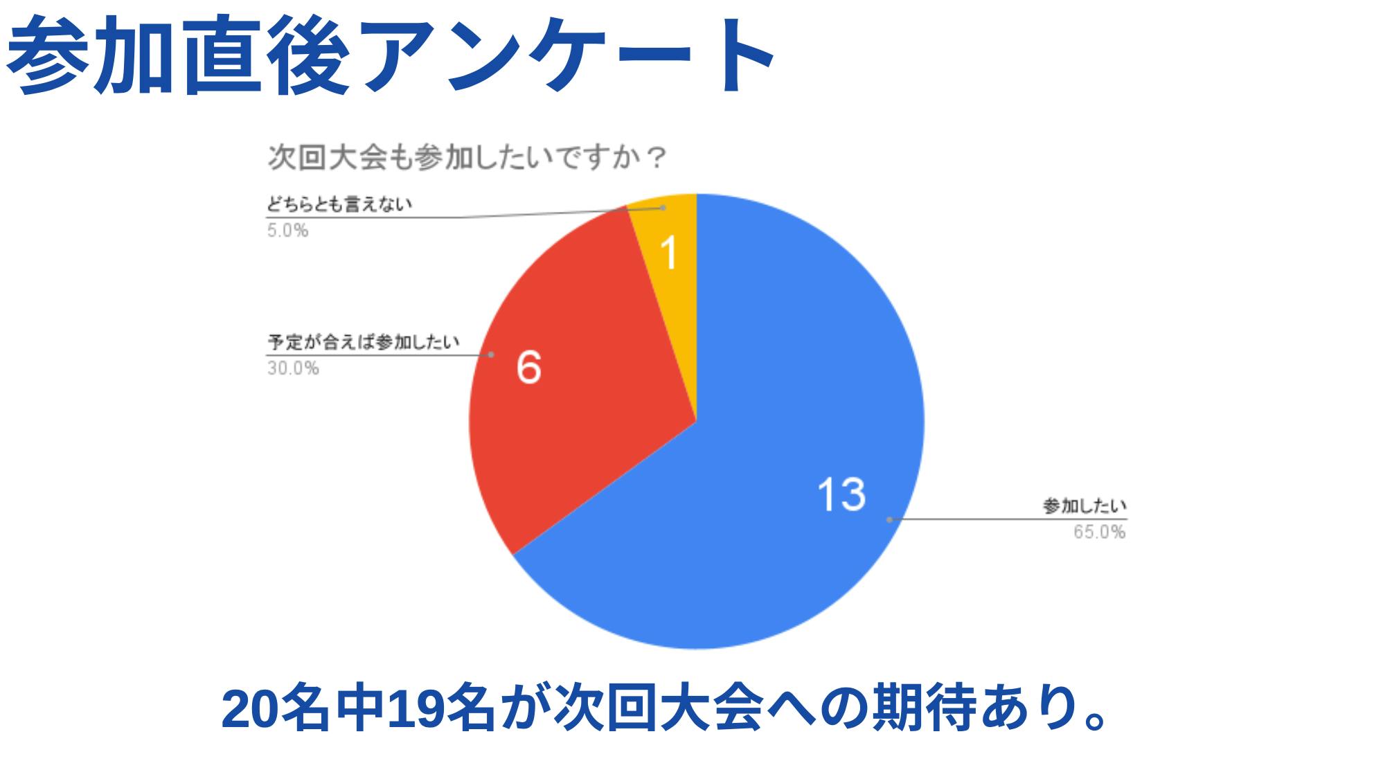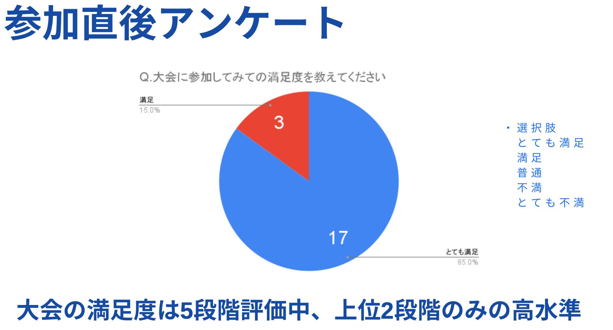参加者のうち回答をいただけた20人より、大会への高い満足度を確認できました。