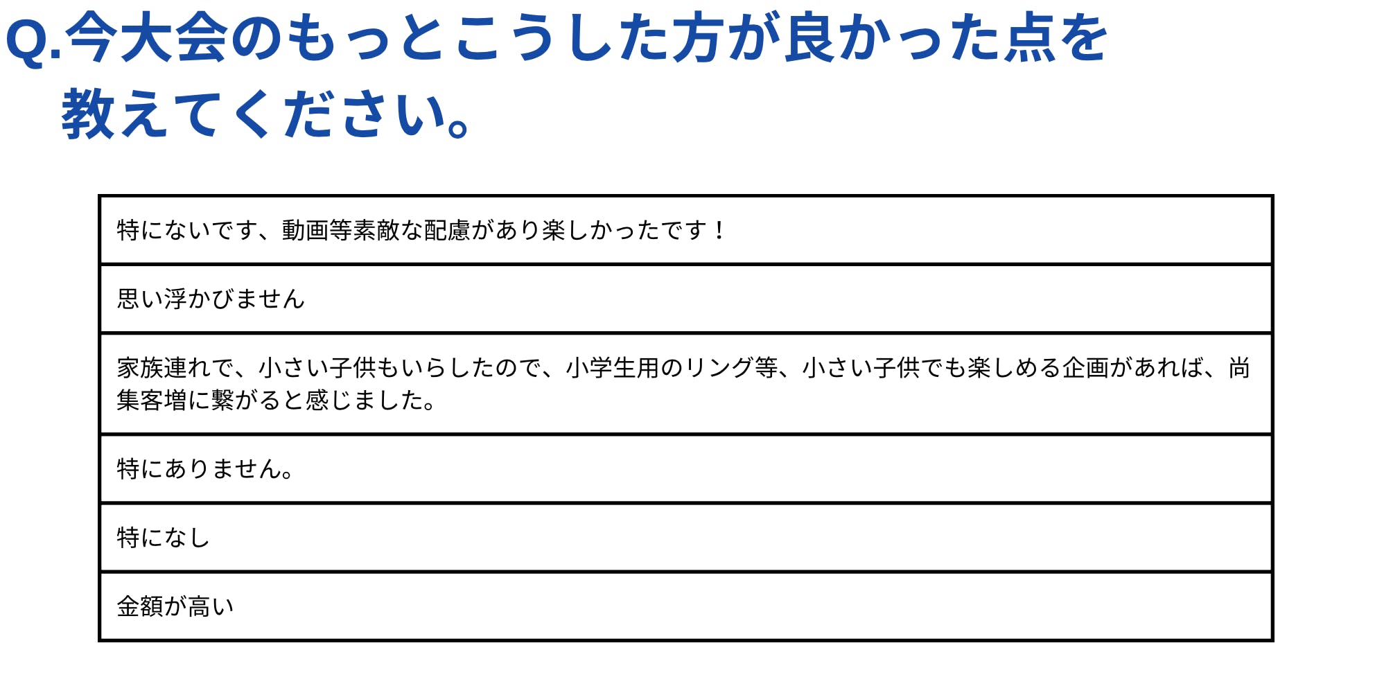いただいたアンケート結果や大会当日の振り返りを仲間たちと行い、前回大会よりも確実にパワーアップします。