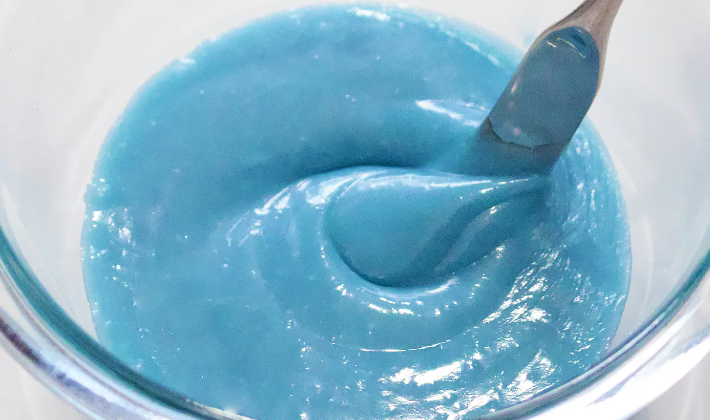 着色は、藻類のスピルリナから抽出した天然系青色素のリナブルーでつけています。