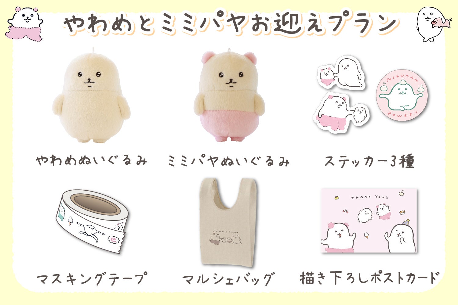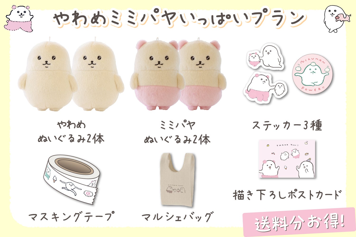 やわめとミミパヤぬいぐるみがゲットできるプランです!