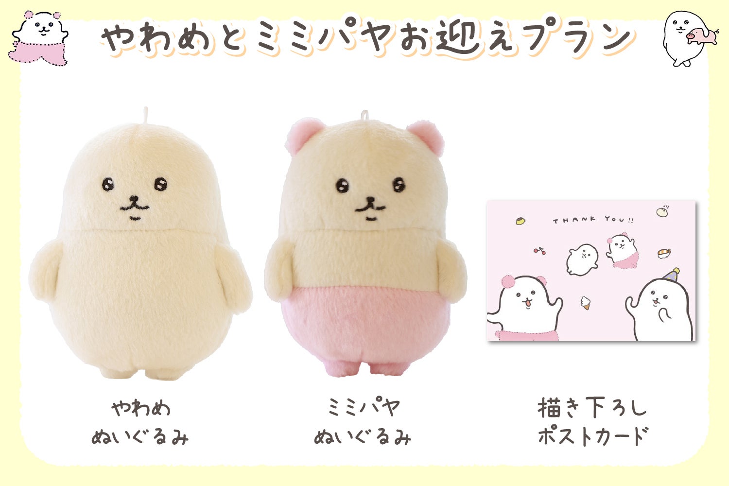 やわめとミミパヤのぬいぐるみが2体ずつ届くプラン!
