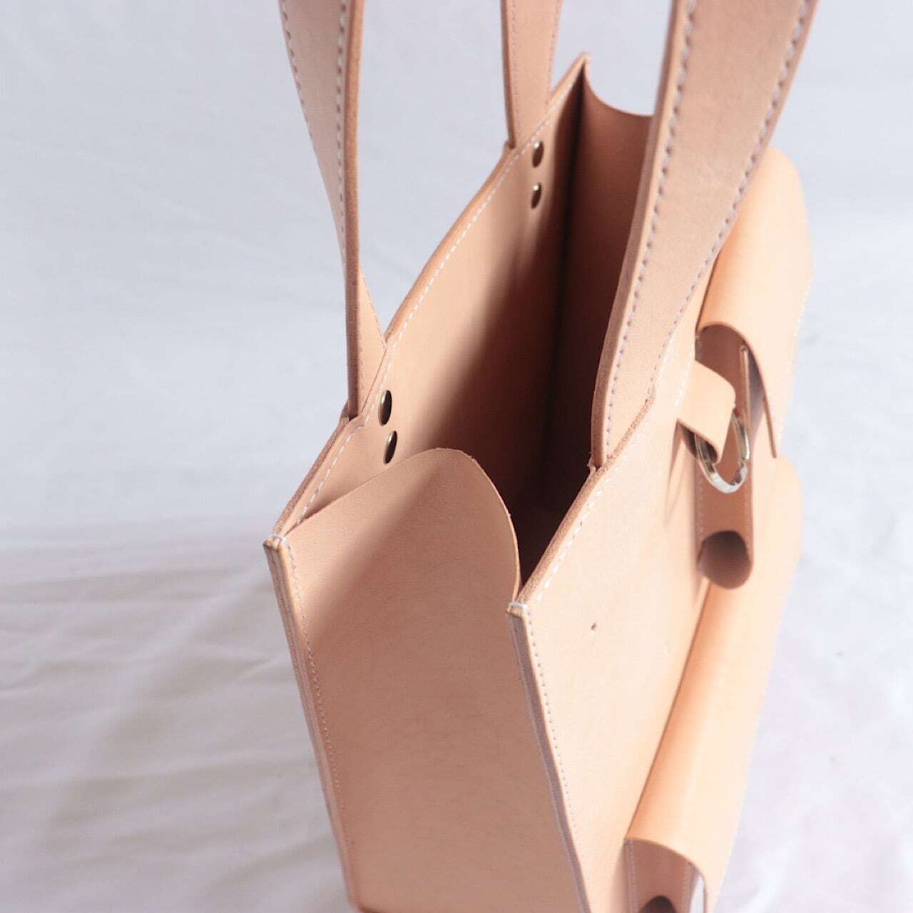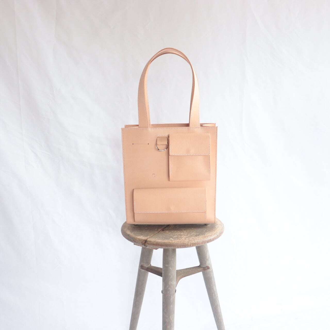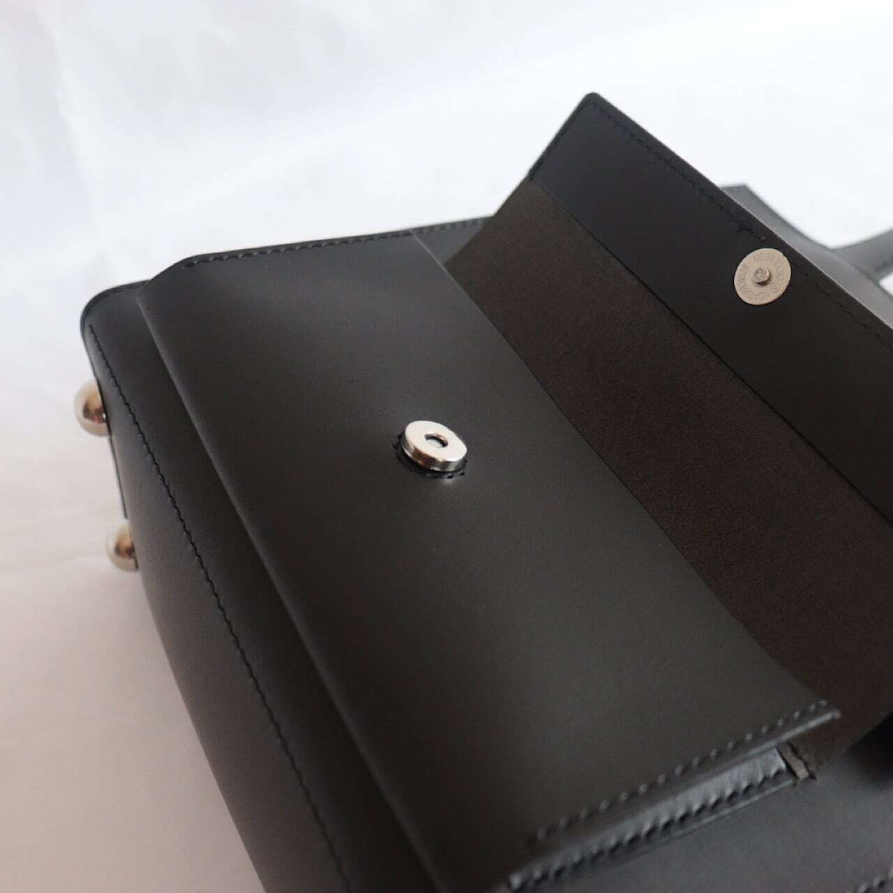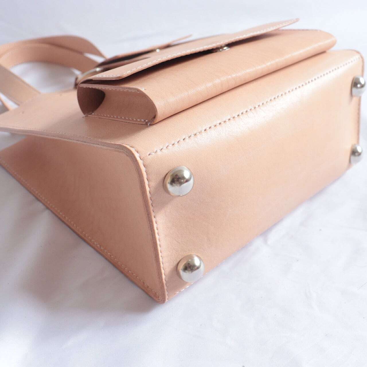 また革のカチッとした印象にかわいらしい丸底鋲はバッグにさりげないアクセントを加える小さなこだわりポイントです。