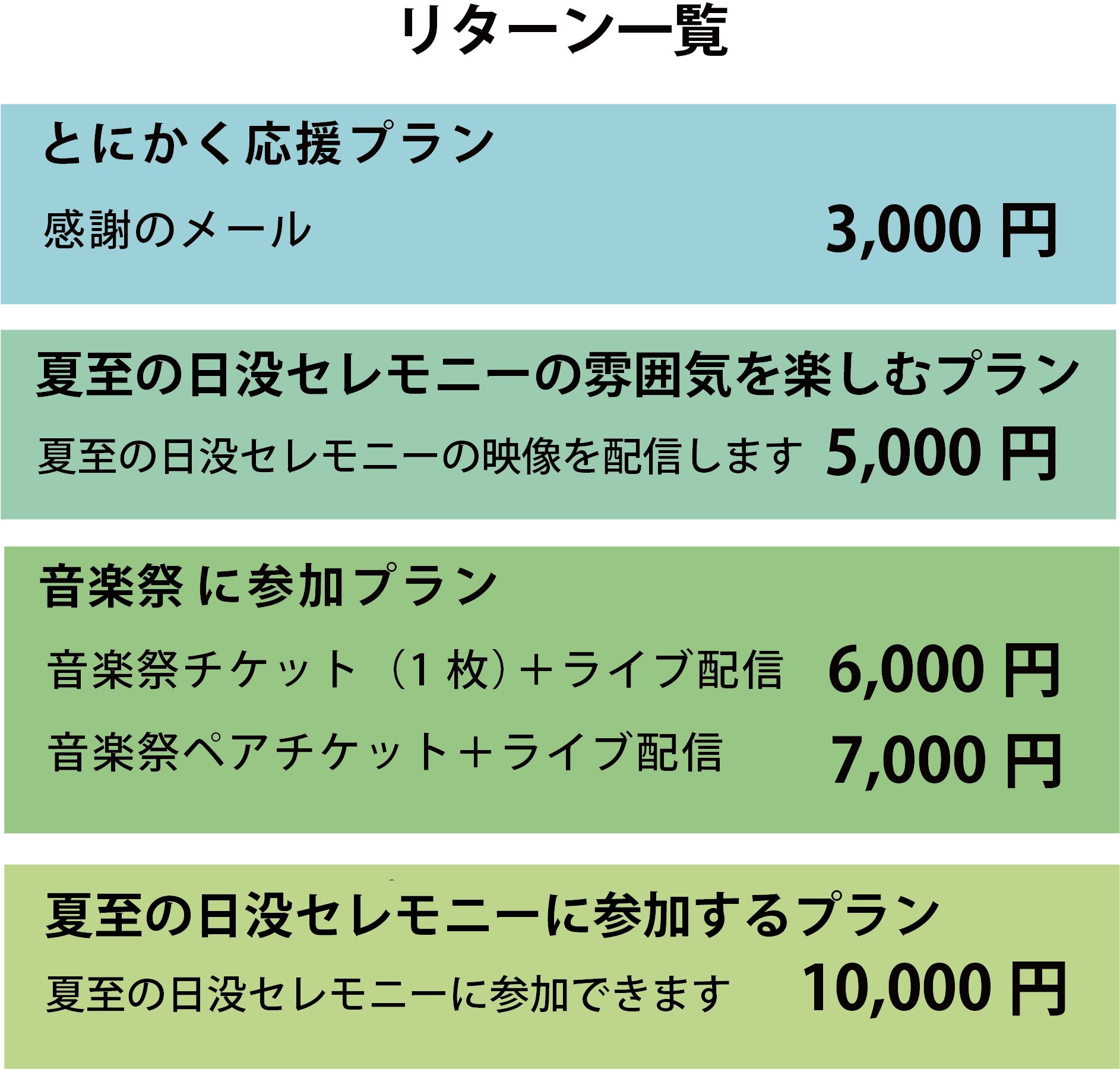 リターンはイベントに参加してもらえるものを中心に5点用意しました。気に入っていただけるものがあったらうれしいです。