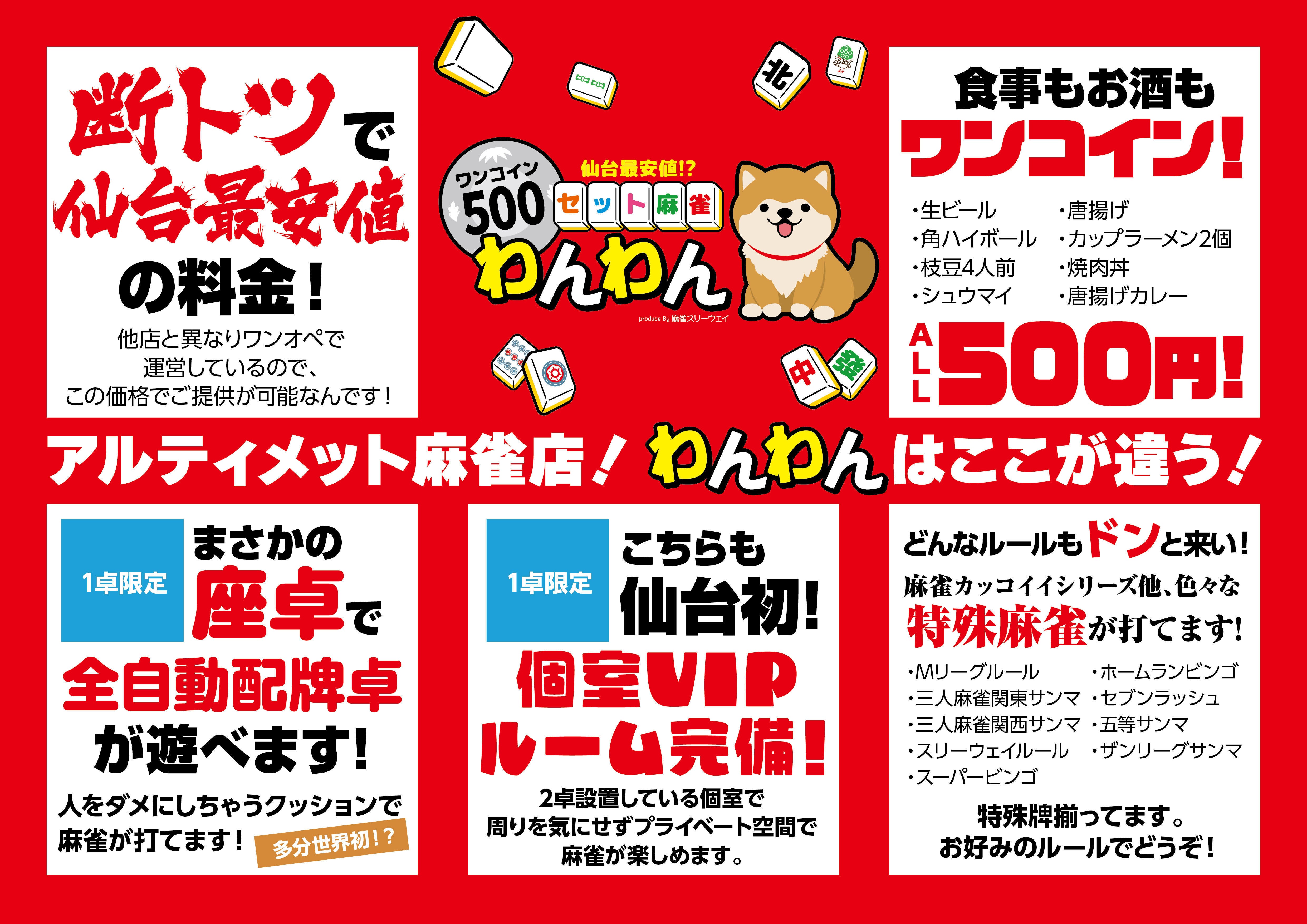 お客様に喜んで貰えて、地域の商店街や、企業さん、麻雀大会等、街を元気にし、結果わんわんのスタッフも笑顔で働ける環境を創れたら良いなと考えおります。