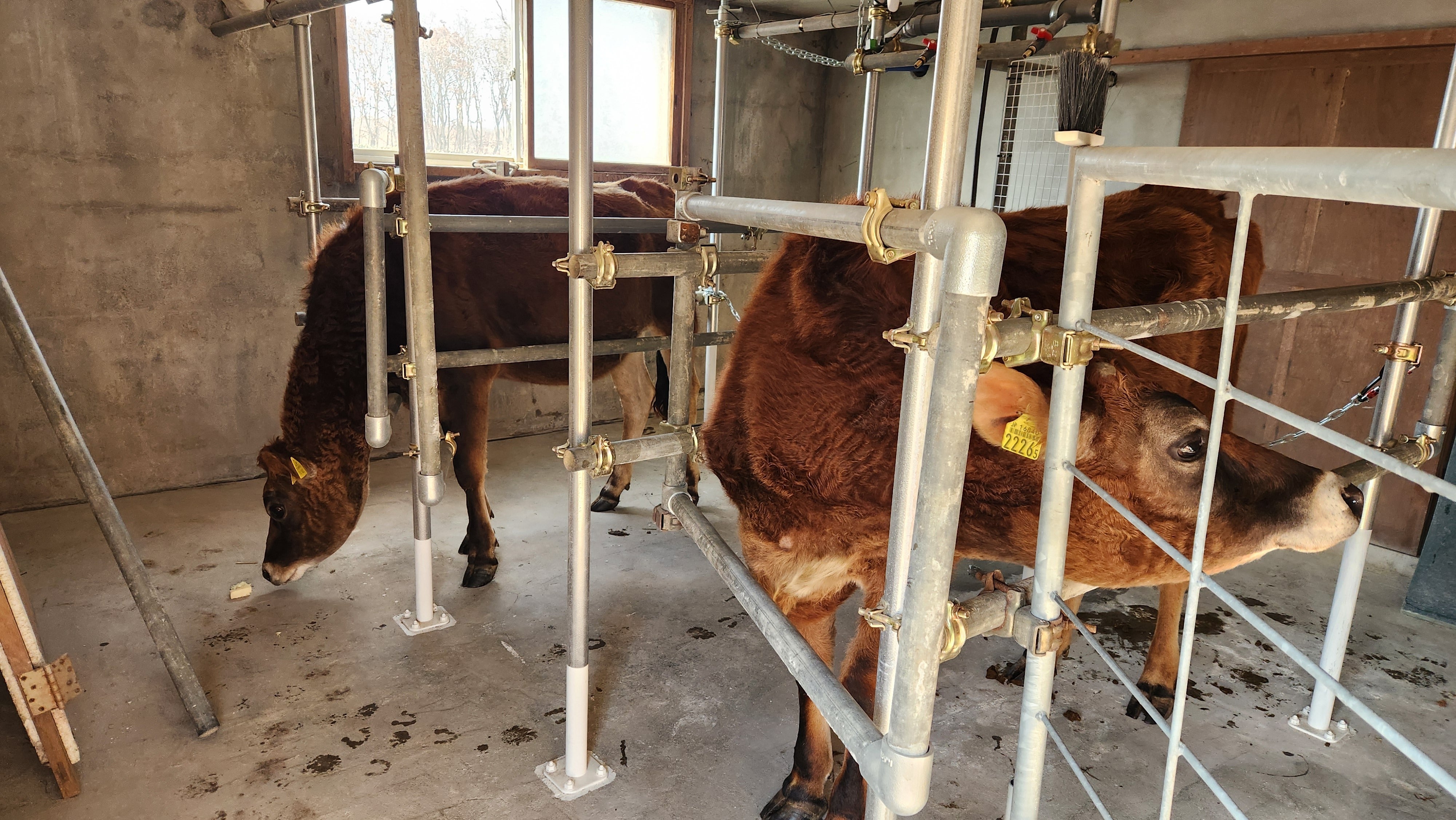 いつもお世話になっている友人たちの助けもあり、年末には無事に牛舎が完成し、寒い冬の間は外だけではなく牛舎の中でも過ごしてもらえるようになりました。