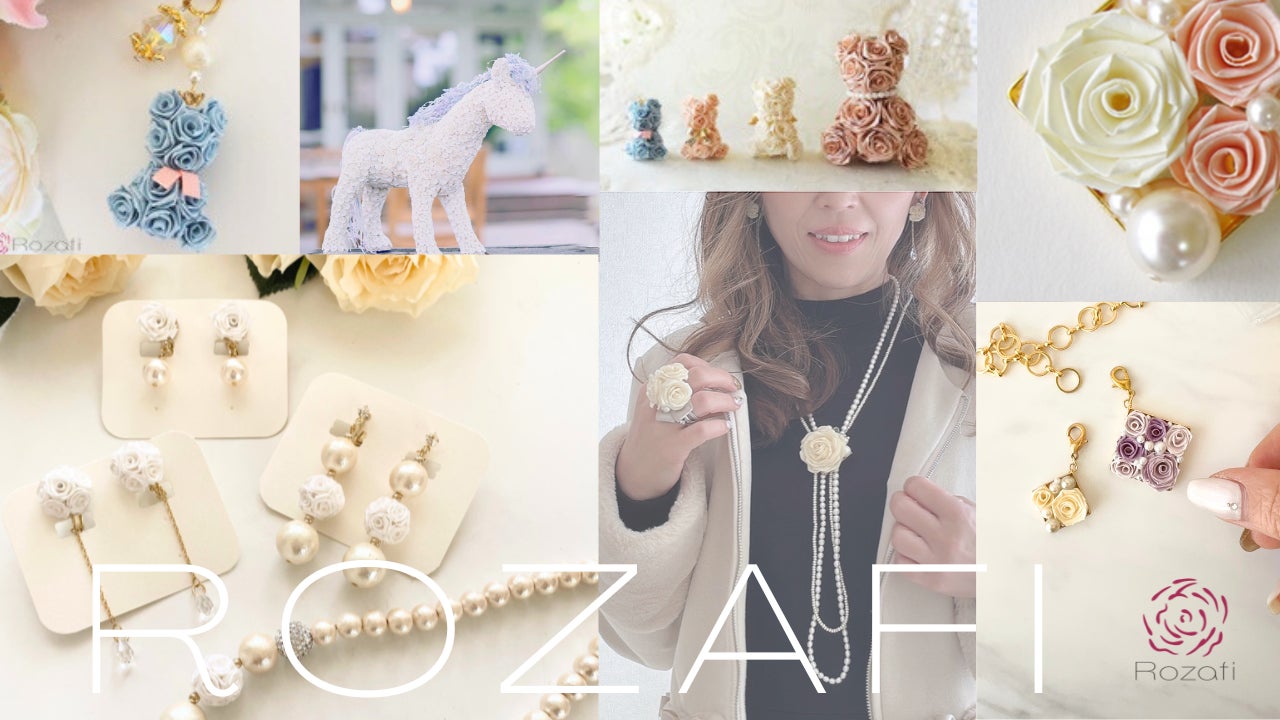 小さなバラをひとつひとつ作り組み合わせ、組み立てて アクセサリーや小物に仕上げていきます。
