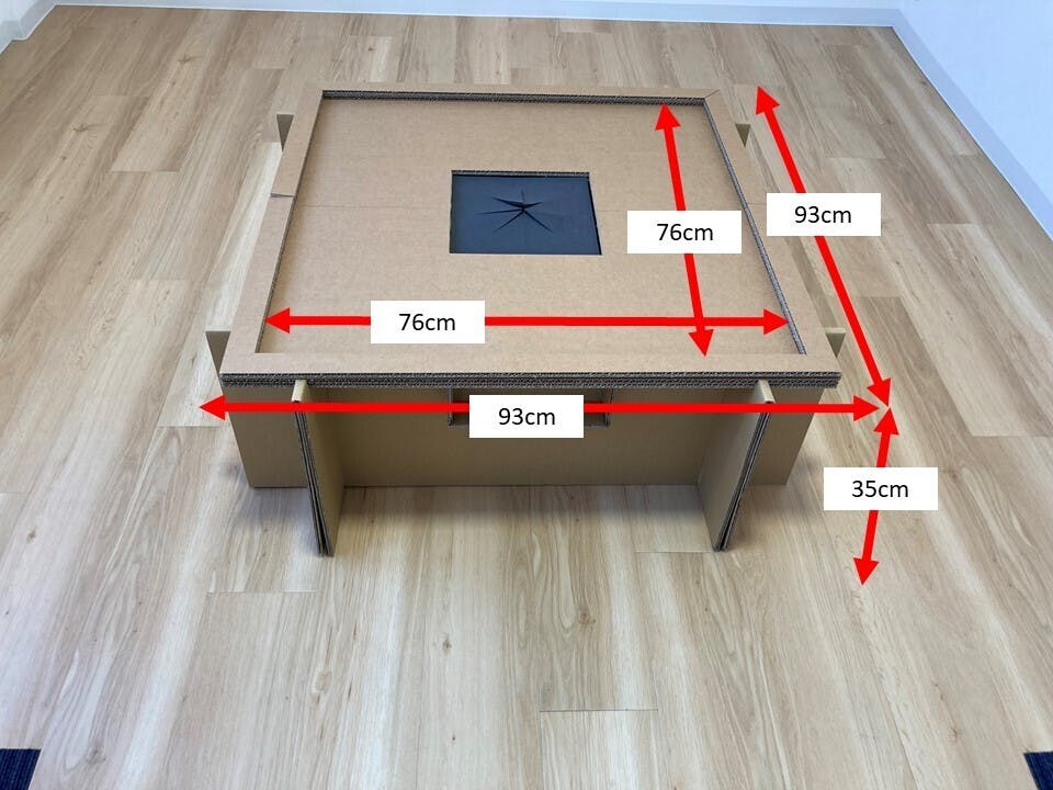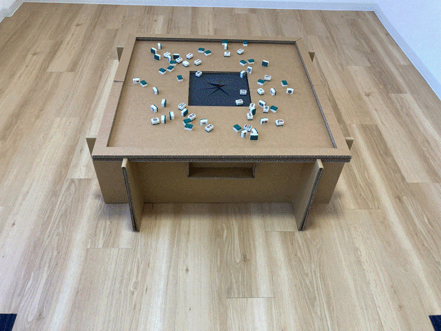 段ボールで色々なモノを作ろうというプロジェクトの中で「野外で麻雀がしたい」という社員の要望に応えて開発しました。