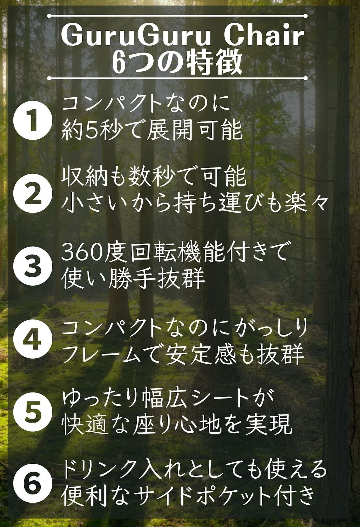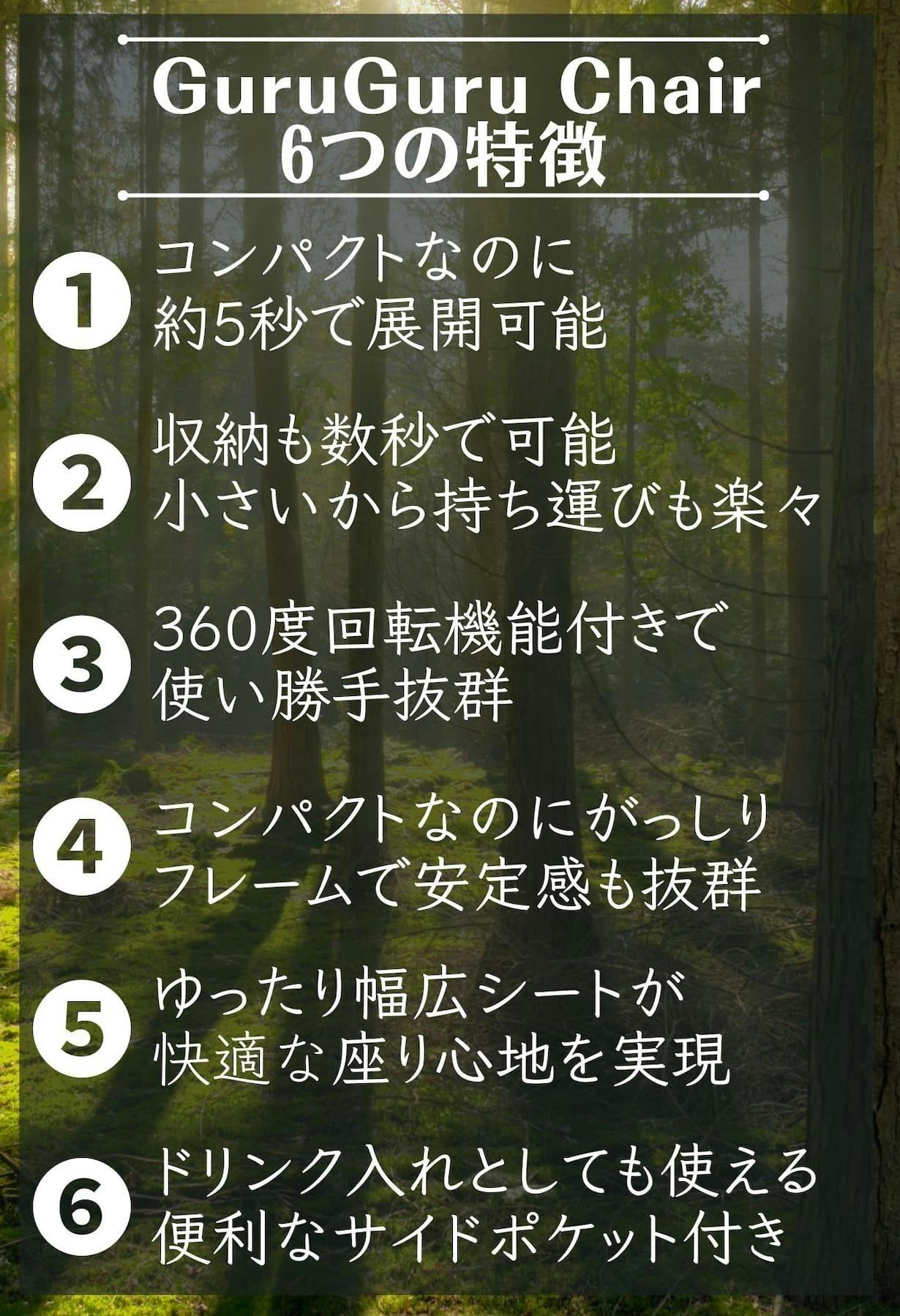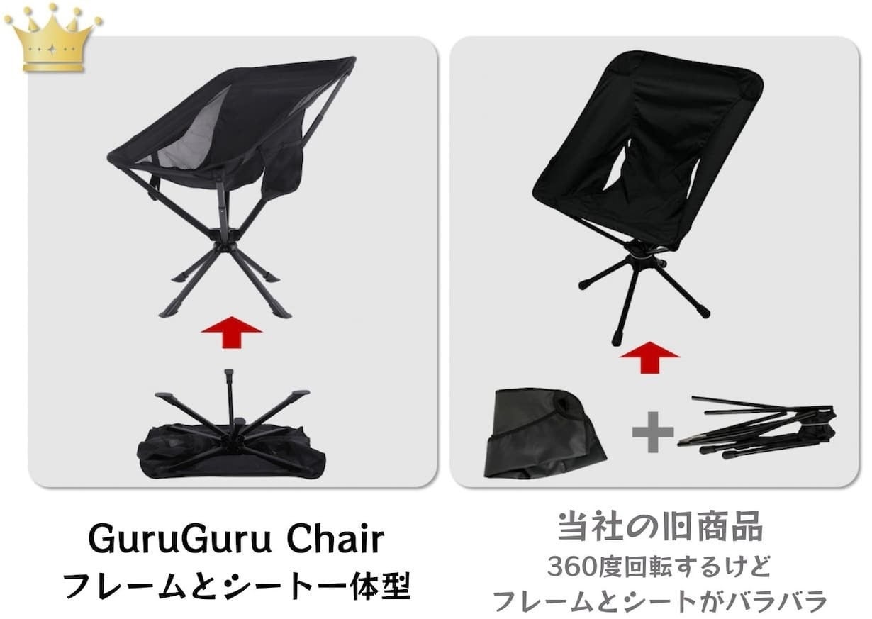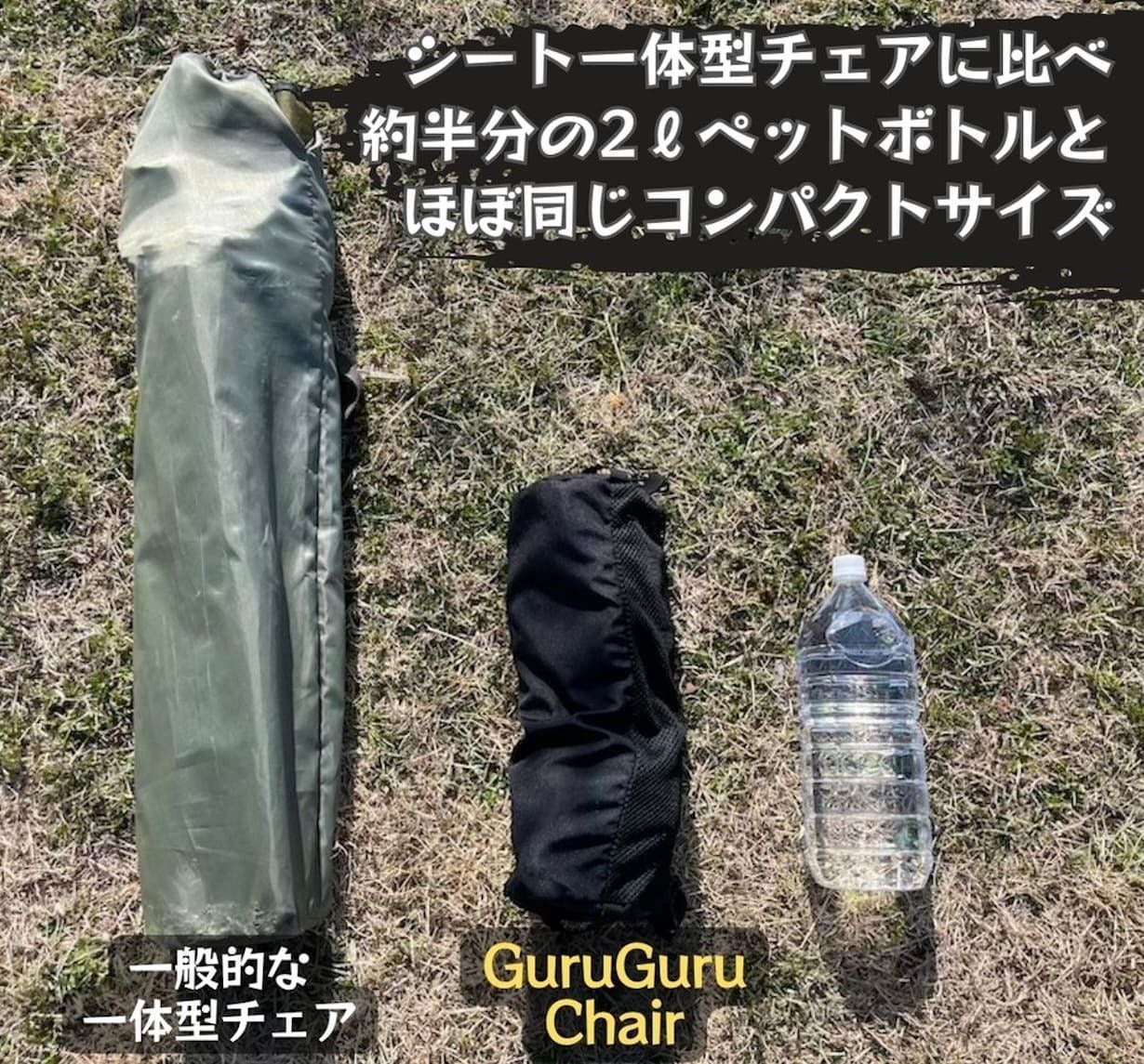 今回取り扱わせていただくGuruGuruChairはポータブルチェアに求める『コンパクト』×『座り心地』さらには『360度回転機能』という使い勝手を兼ね備えた革新的な折りたたみポータブルチェアです!