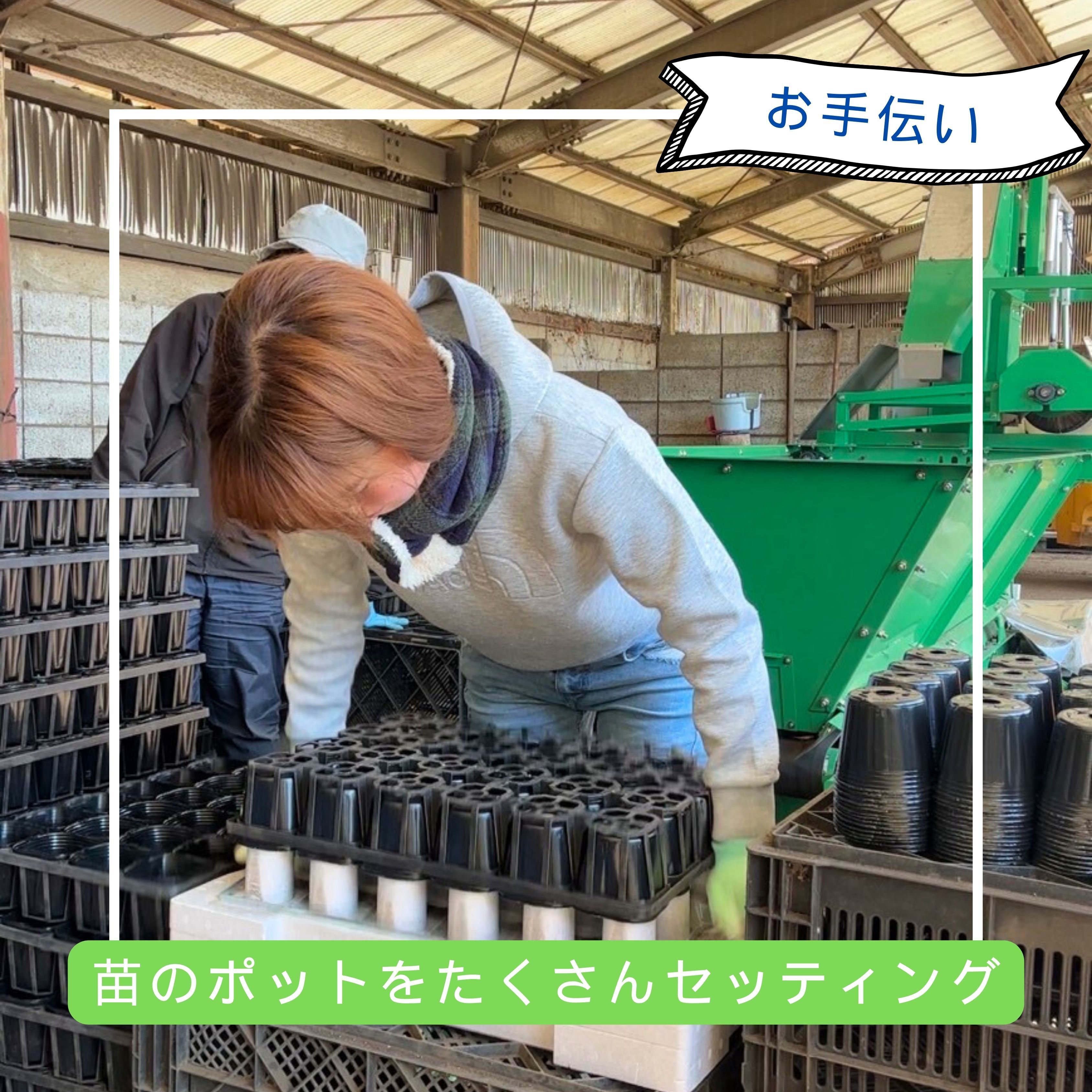 水やりさせてもらったり、苗の様子を観察したり、ポットセッティングしたり。