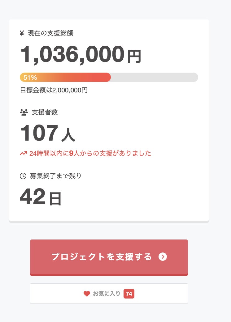 クラファン開始から5日目で、目標金額(第1ゴール)の50%を達成しました!107名の方からご支援をいただき、心より感謝申し上げます! 残りの42日間も、どうぞお力添えをお願いいたします!