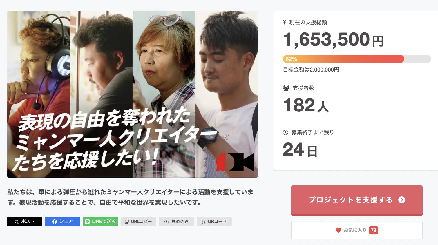 クラウドファンディングも開始から23日間を経過、82%達成・182名の方々からご支援いただきました。目標金額200万円、まもなく達成が見えてきました。