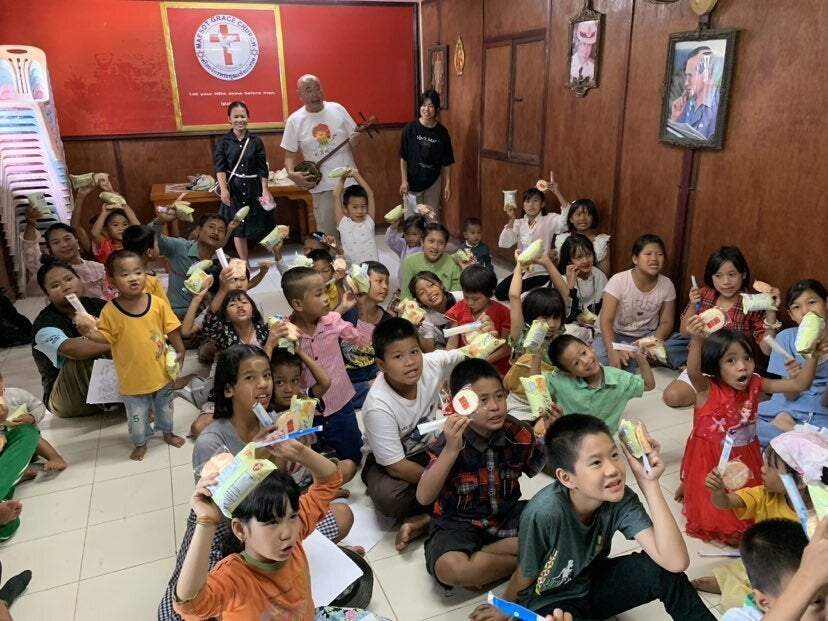 12月1日には、松本夫妻がメーソット・グレース教会で約50人の子どもに、正しい歯の磨き方などを教えました。この教会には孤児院が設置されており、そこに住む子どもたちや、礼拝に参加したミャンマー人の子どもが参加しました。