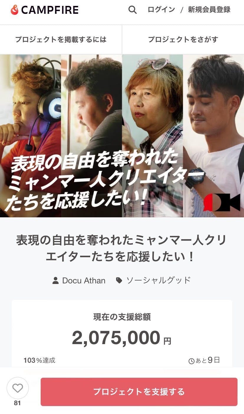 今後は12月20日までクラウドファンディングを継続し、300万円の第2ゴールを設定しました。第1ゴールでは主にミャンマーのクリエイターへの直接的な支援に重きを置いていましたが、第2ゴールではそれに加えて、タイのミャンマー国境の町に設置した活動拠点「ドキュ・アッタン・スクエア」での支援活動を充実させることにも当てたいと思います。