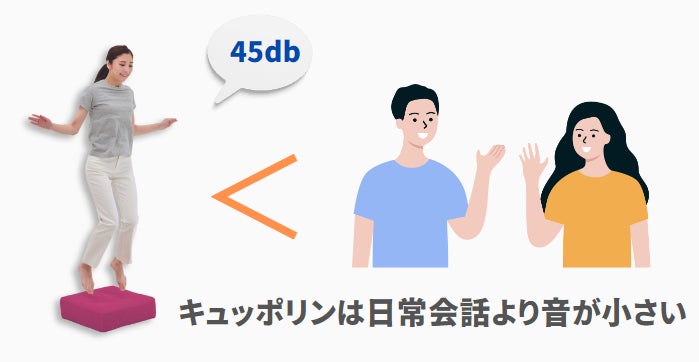 衝撃吸収ウレタンで着地時の衝撃を和らげます。音と振動を吸収し、日常会話よりも静かに。マンションやアパート、ご自宅の2階でもお使いいただけます。