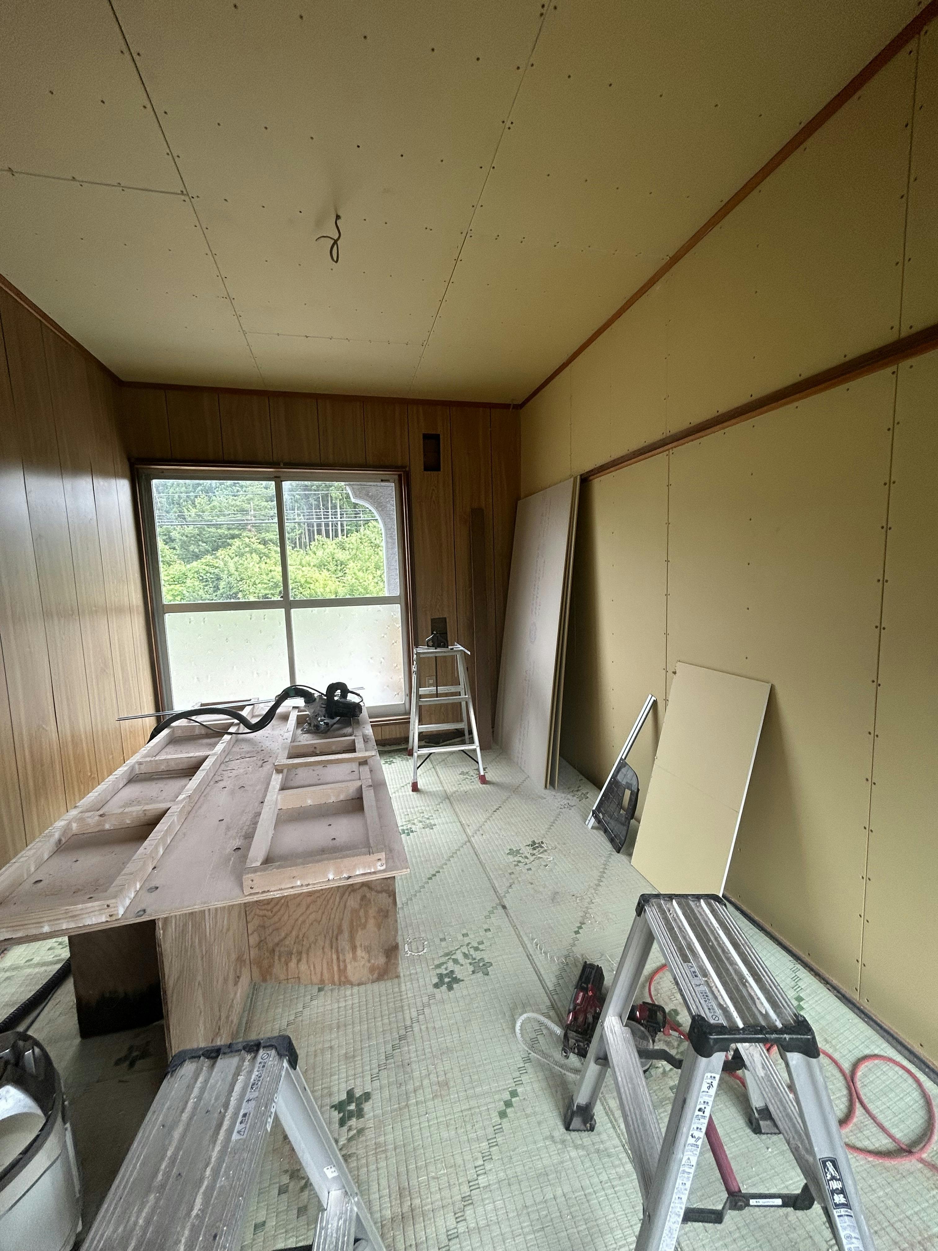 写真は2階のゲストルームです。壁ができ、フローリングが貼られ、部屋になってきました!